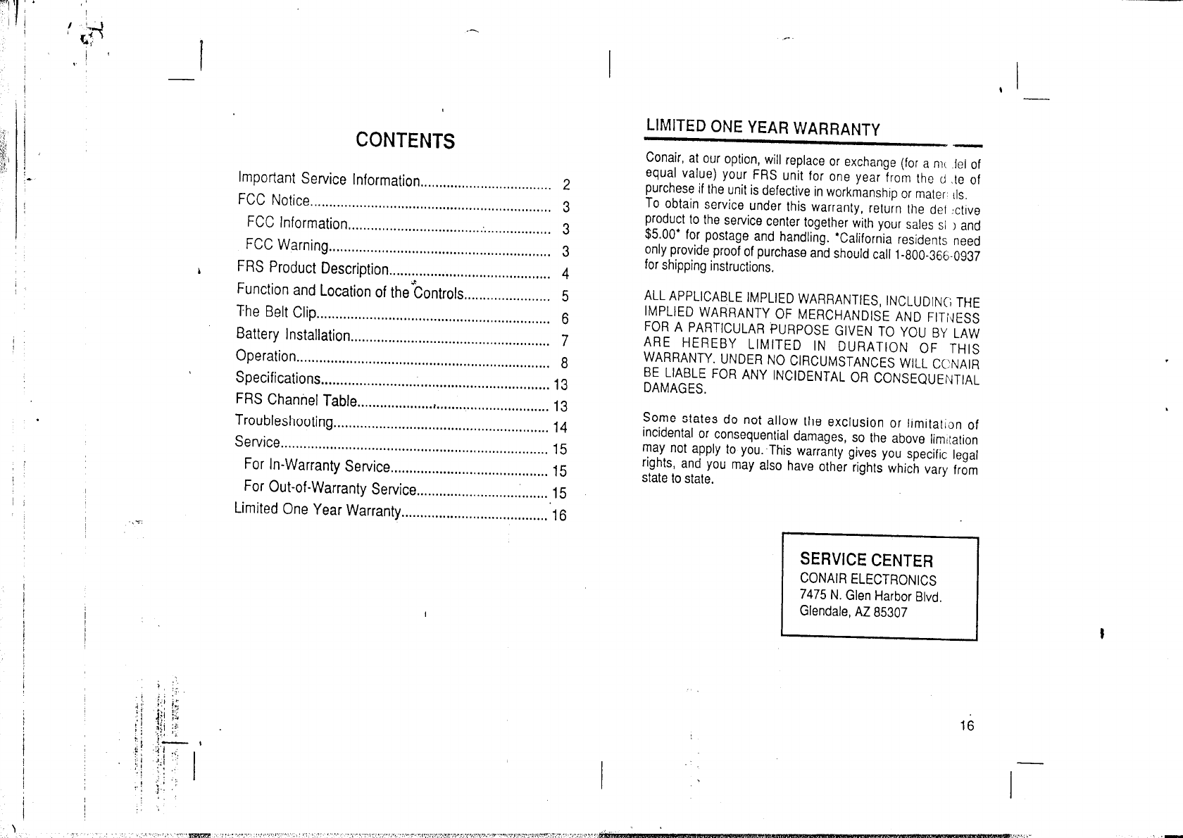 Continental Conair FRS250 14 Channel Family Radio Service (FRS) User Manual