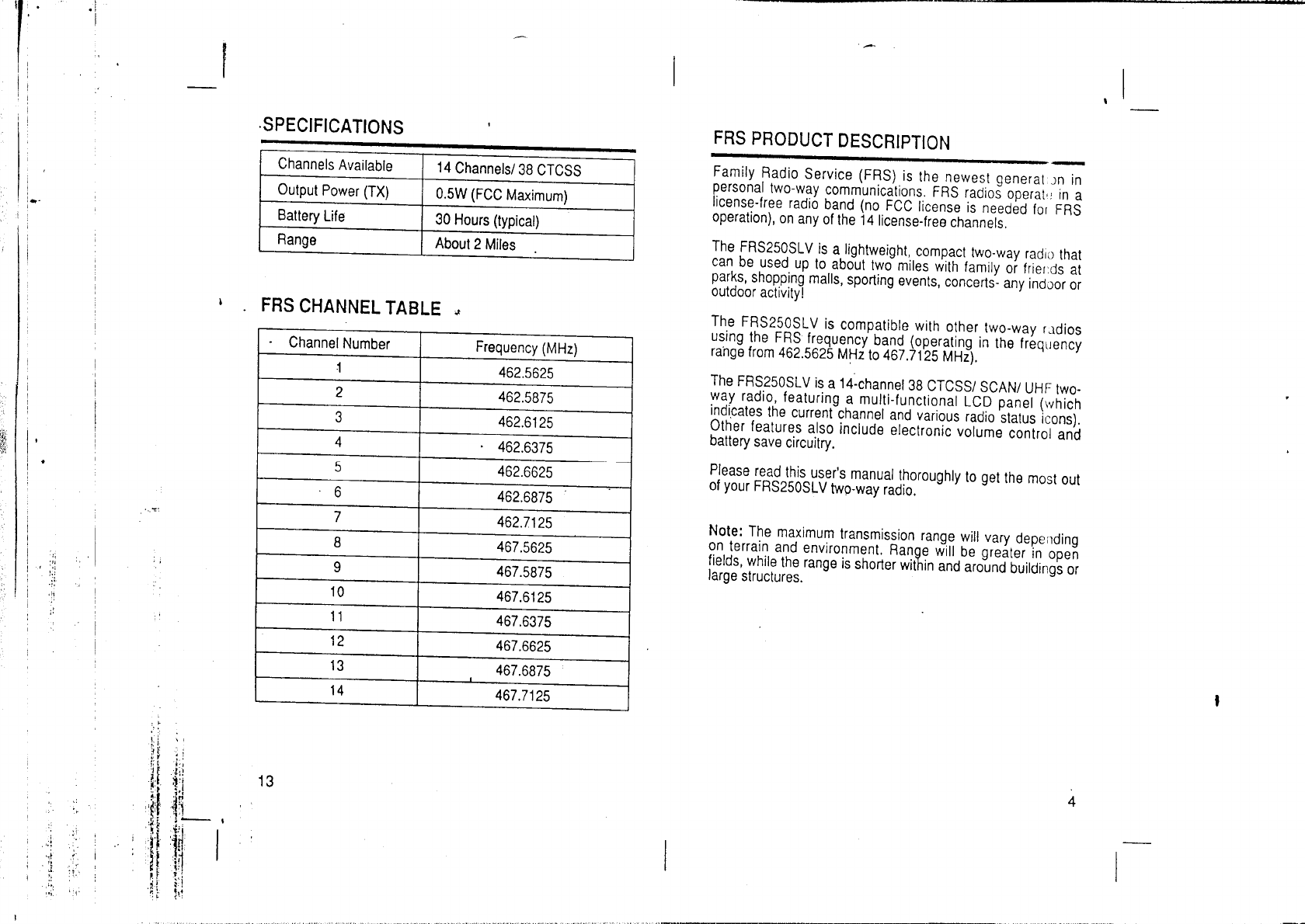 FRS250 User Manual HTML Version