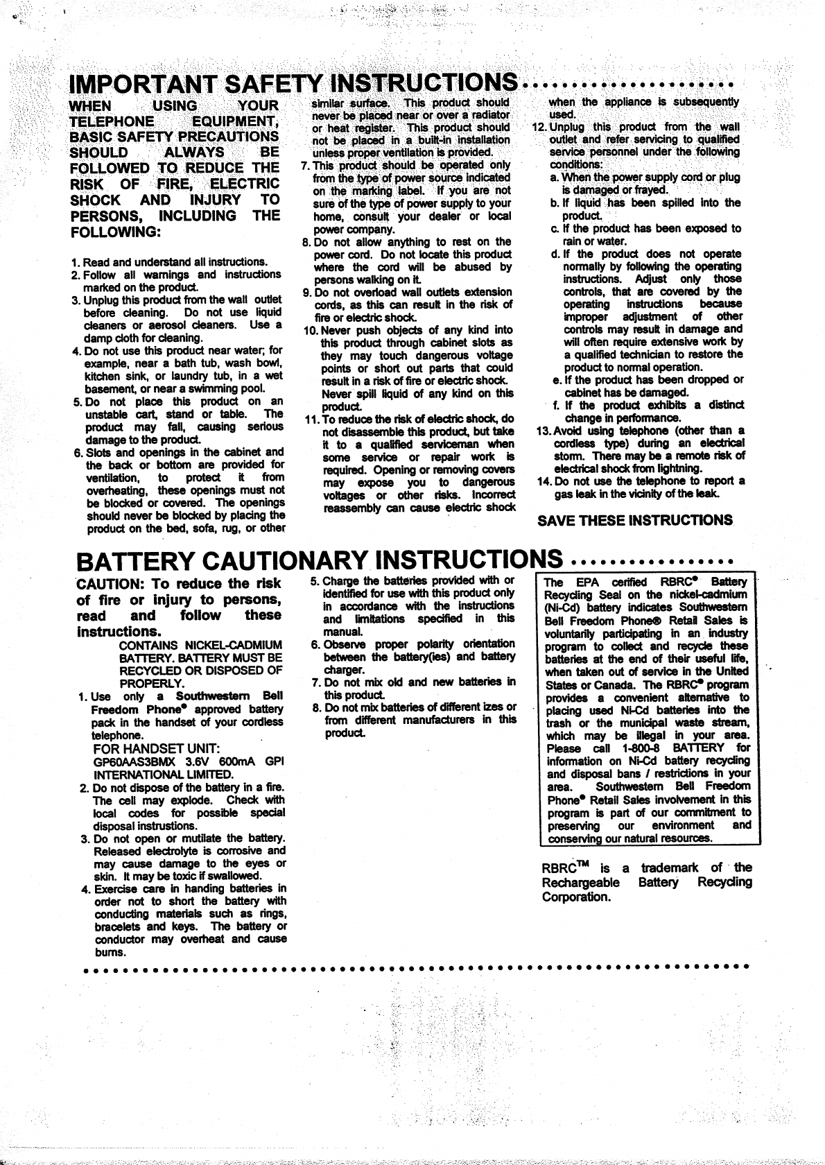 Continental Conair GH2405 Cordless Telephone User Manual Manual