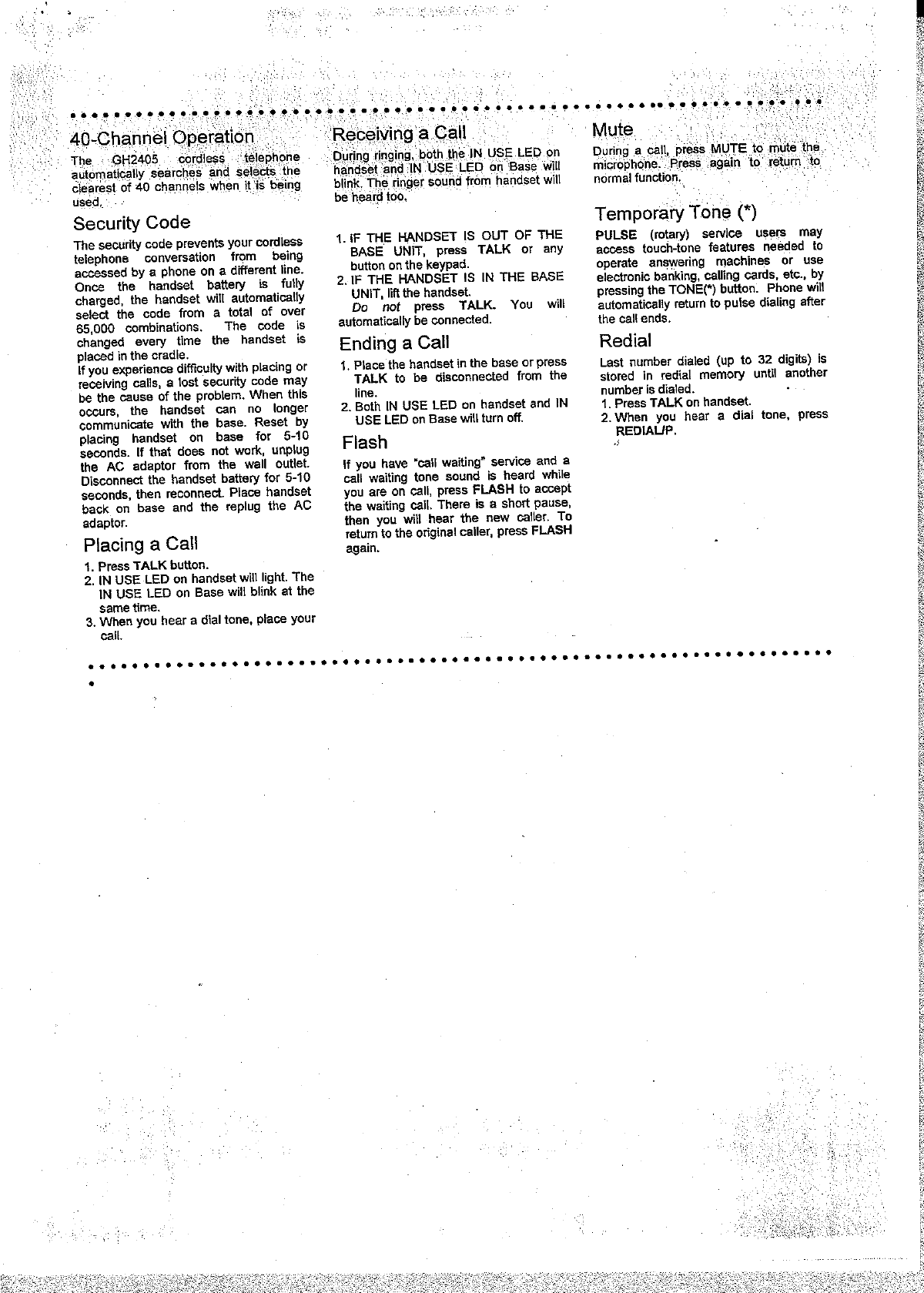 Continental Conair GH2405 2.4GHz Direct Sequence Spread Spectrum Cordless Ph User Manual