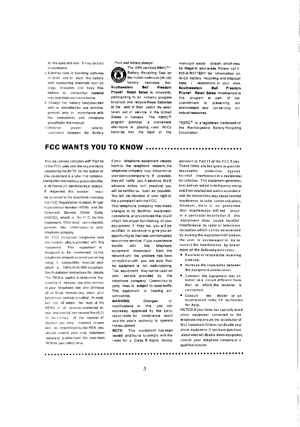 Continental Conair GH3000GK 2.4GHz Analog Modulation Cordless Phone User Manual FCC Information