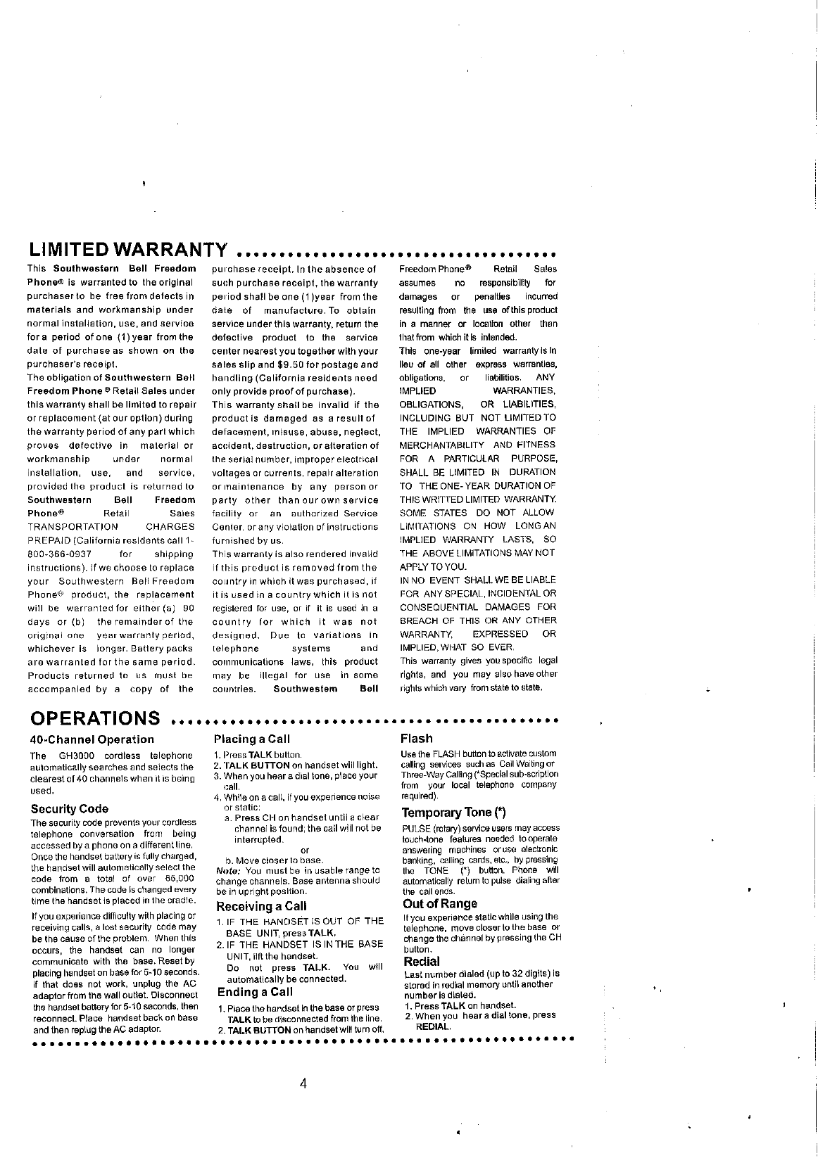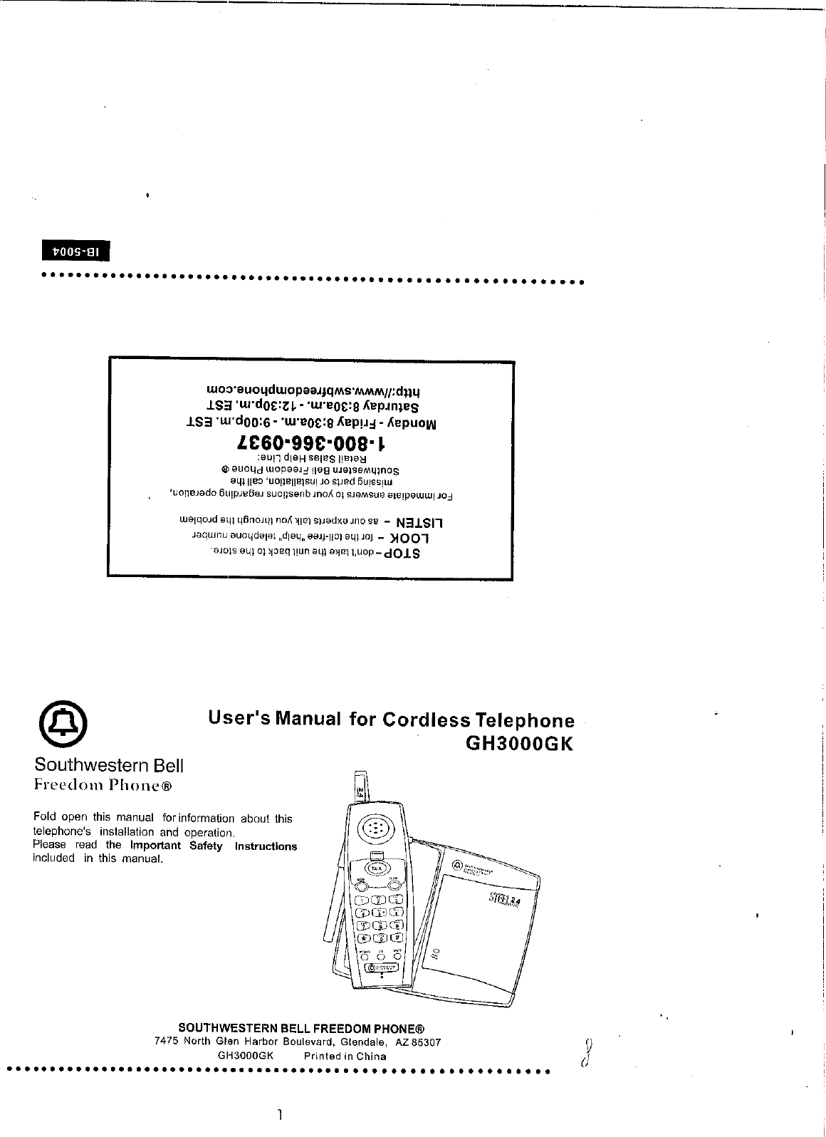 Continental Conair GH3000GK 2.4GHz Analog Modulation Cordless Phone User Manual