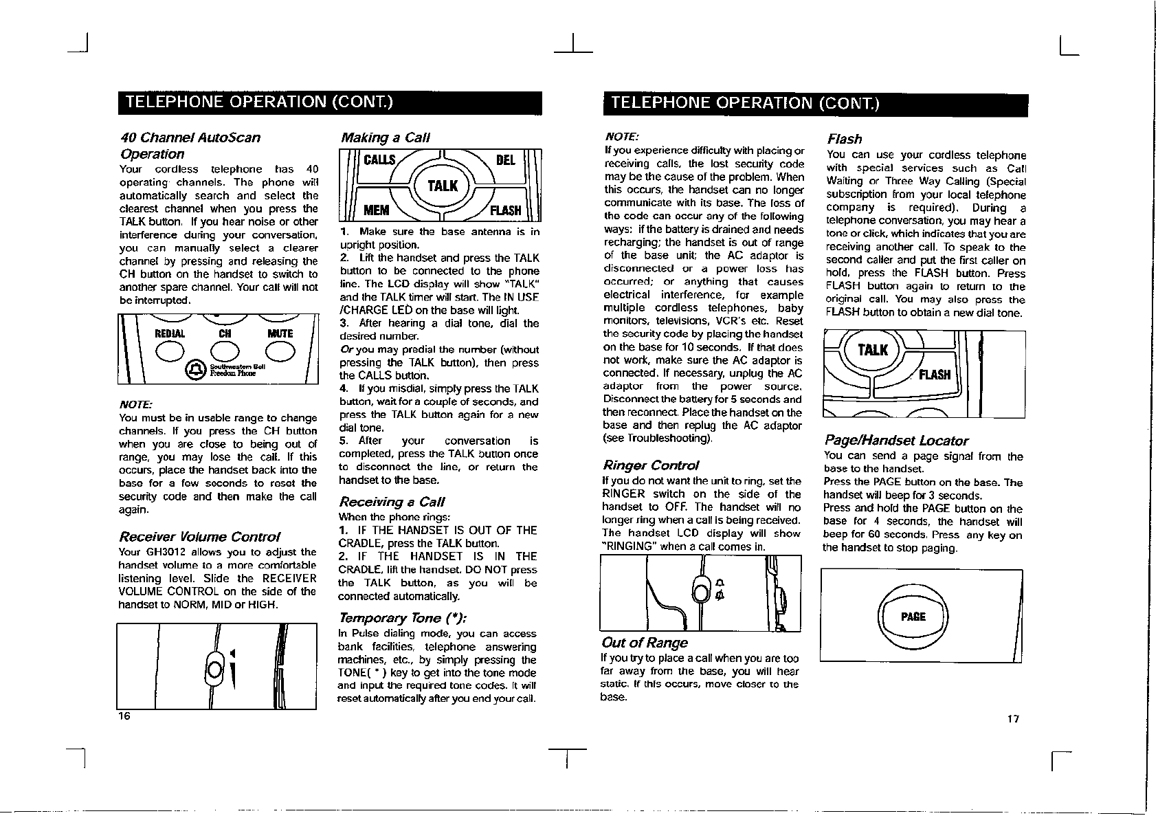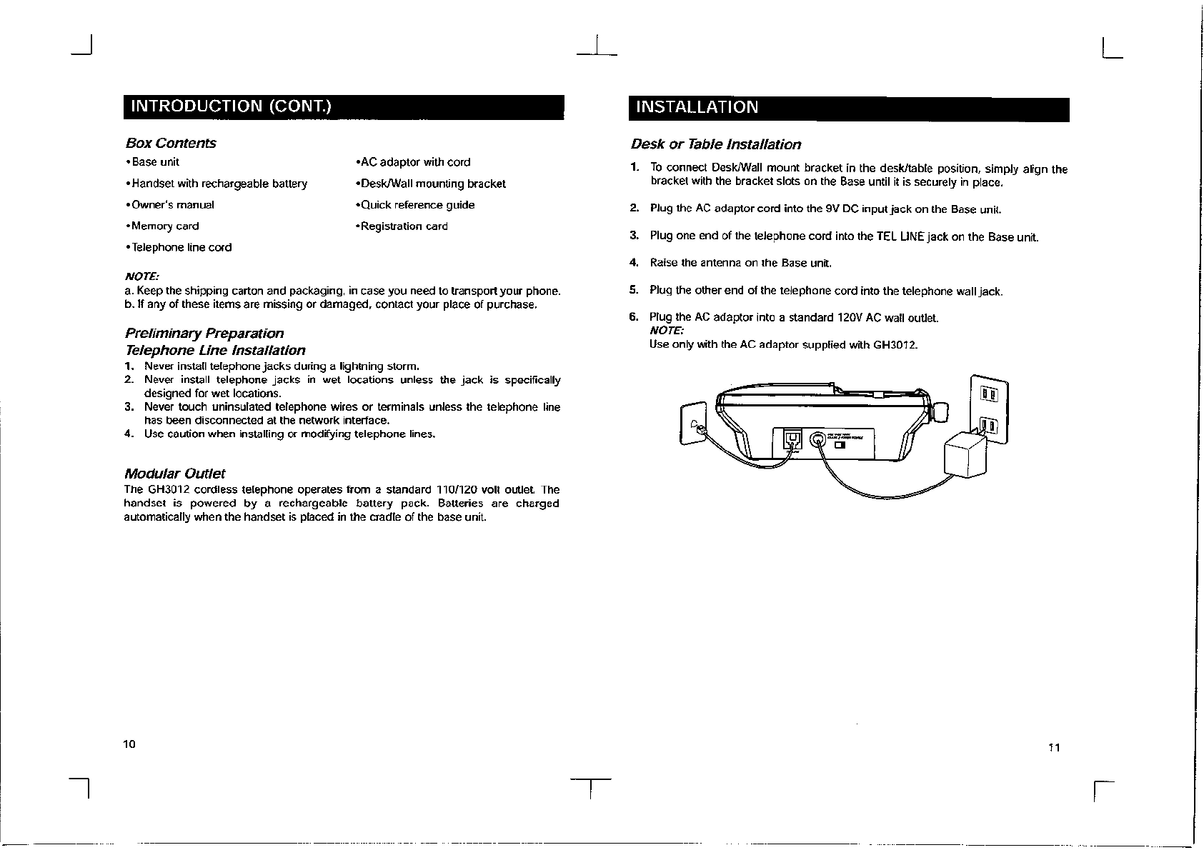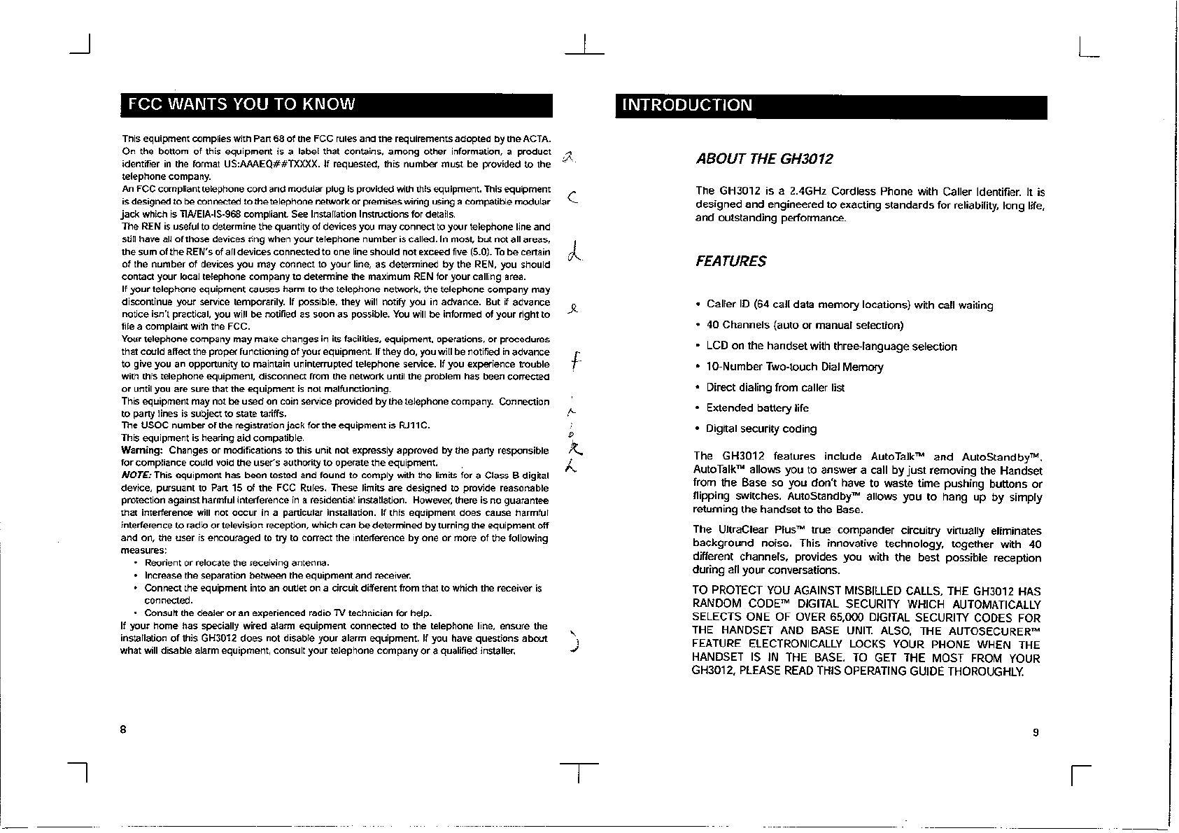 Continental Conair GH3012AT 2.4GHz 40 Channel Analog Modulation Cordless Phone User Manual