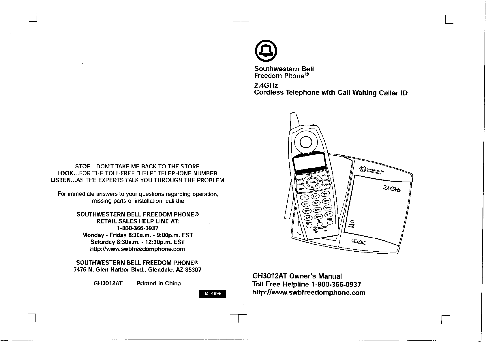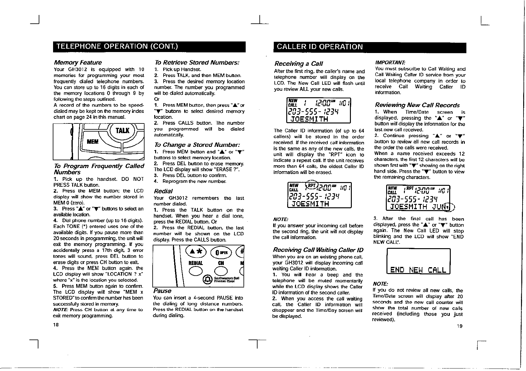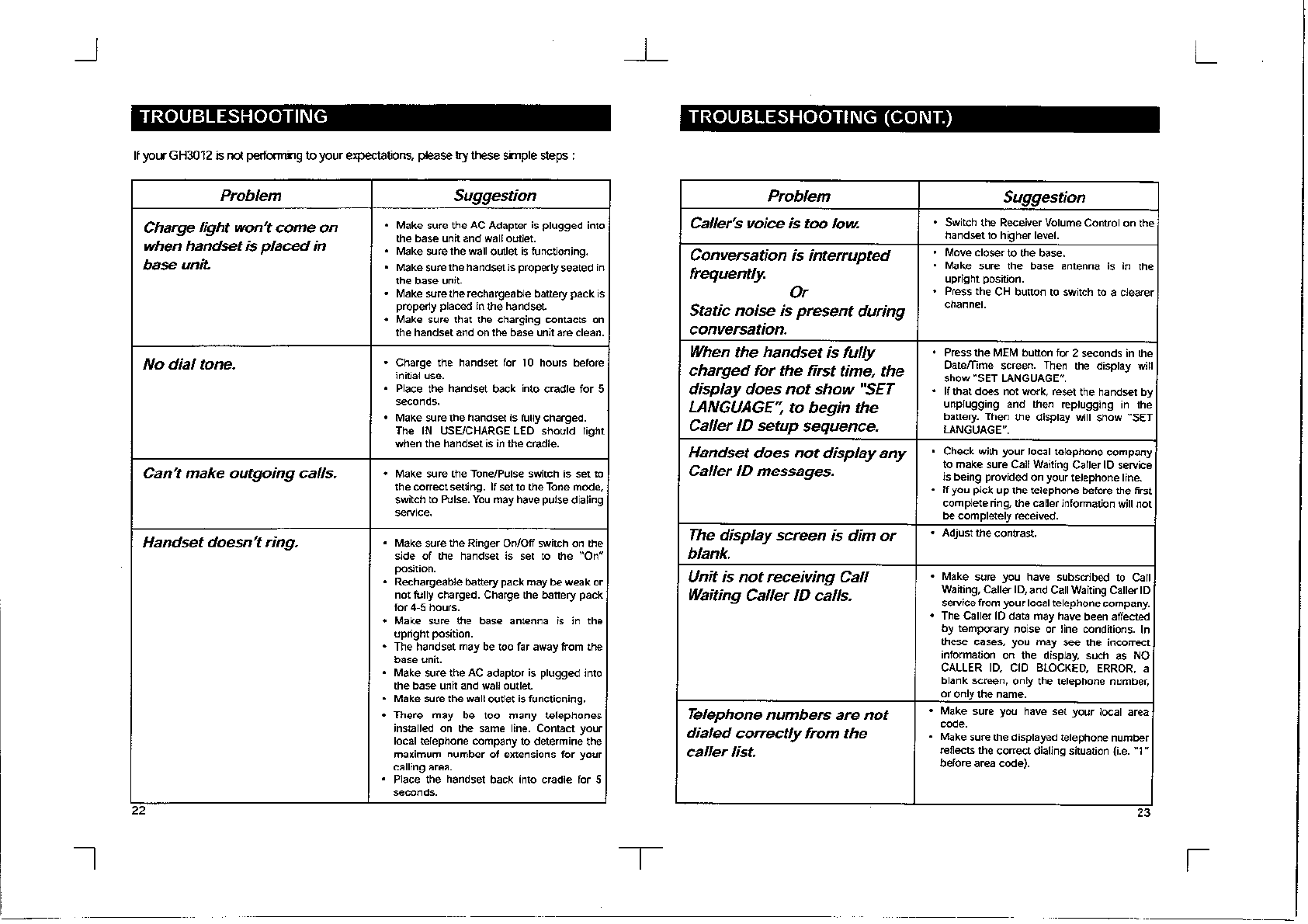 Continental Conair GH3012AT 2.4GHz 40 Channel Analog Modulation Cordless Phone User Manual