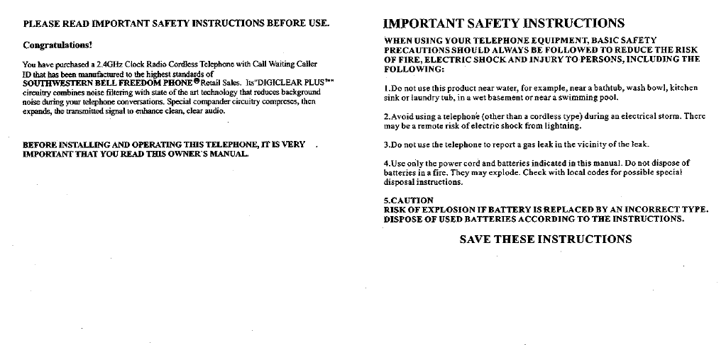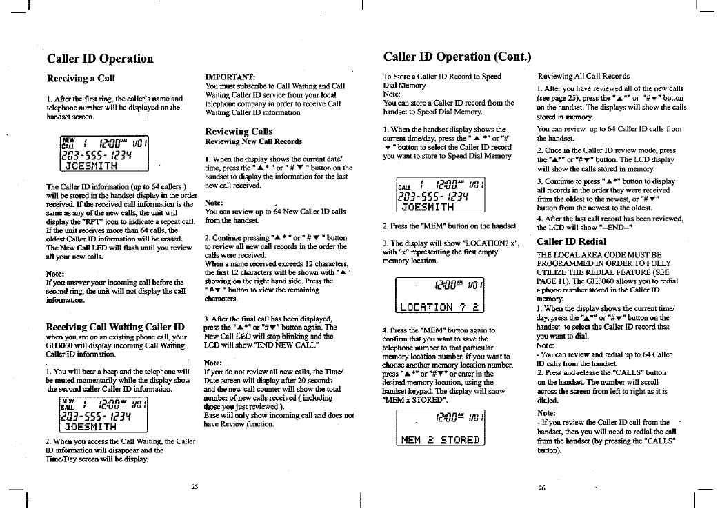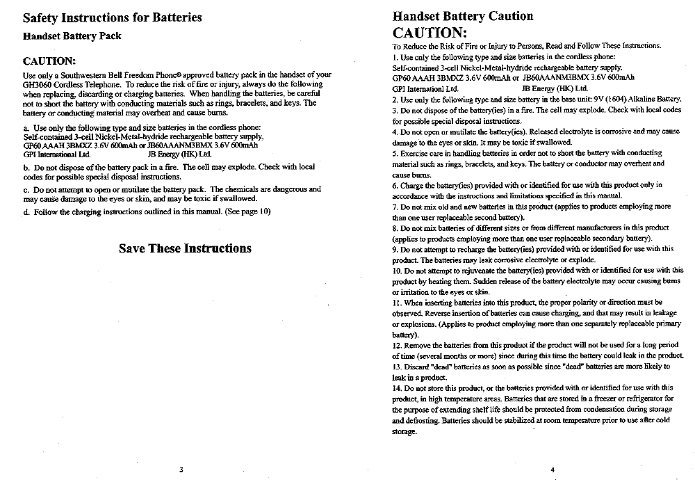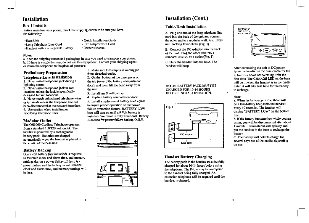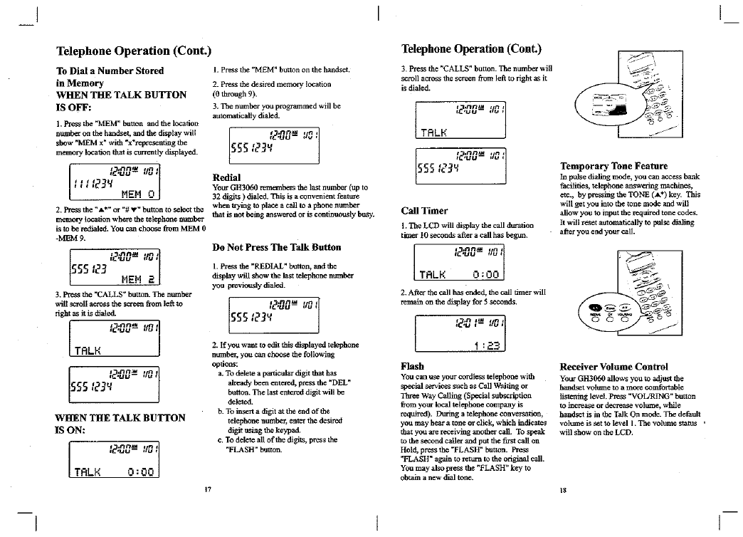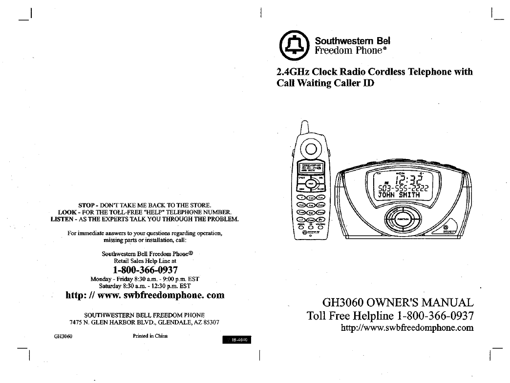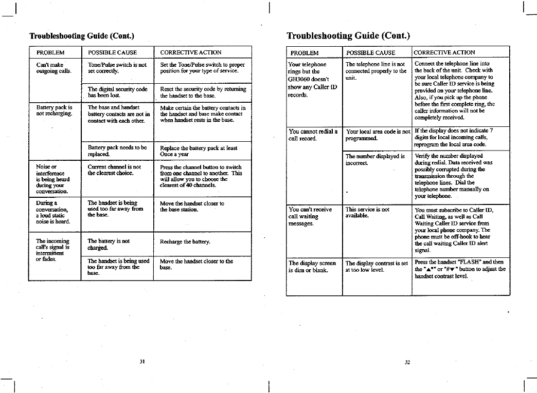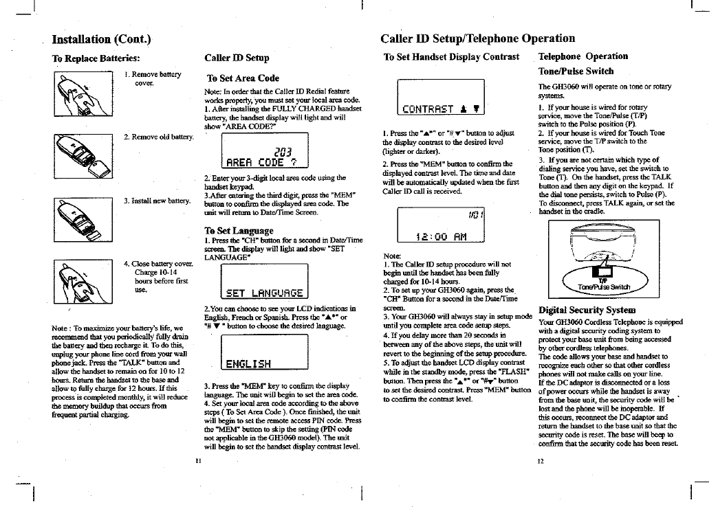 Continental Conair GH3060 CORDLESS TELEPHONE SYSTEM User Manual MANUAL