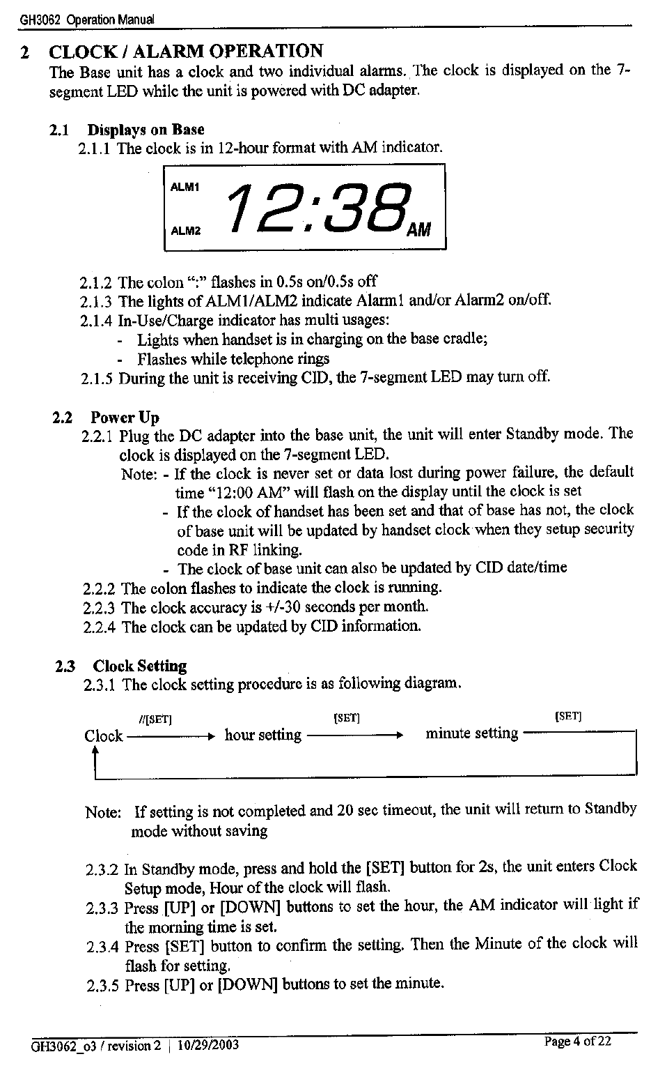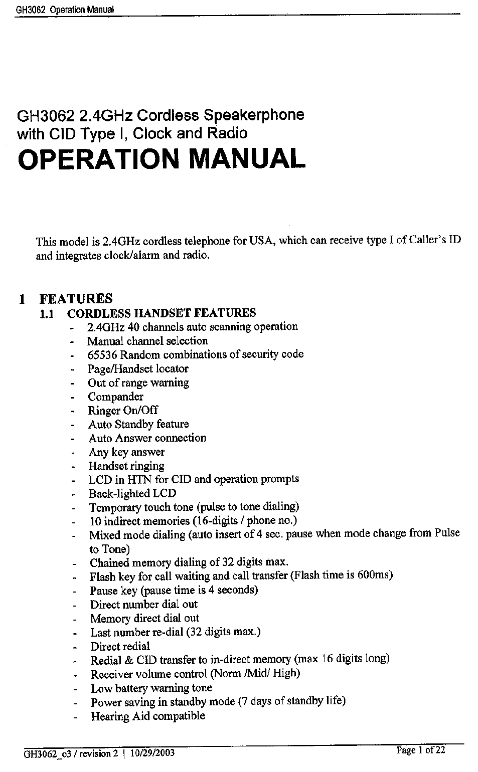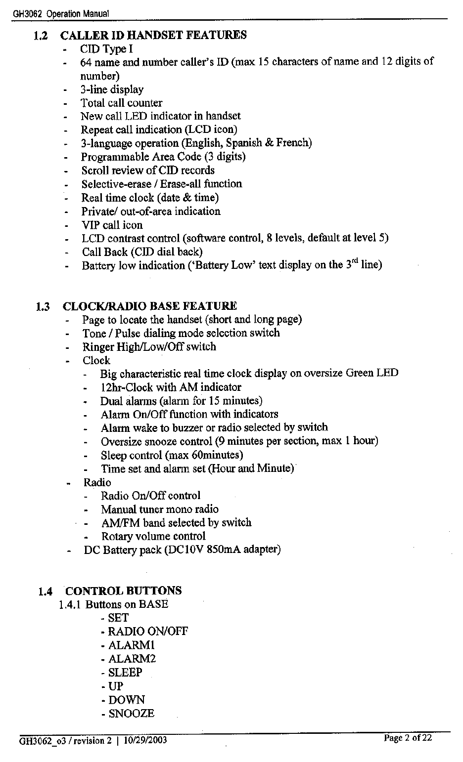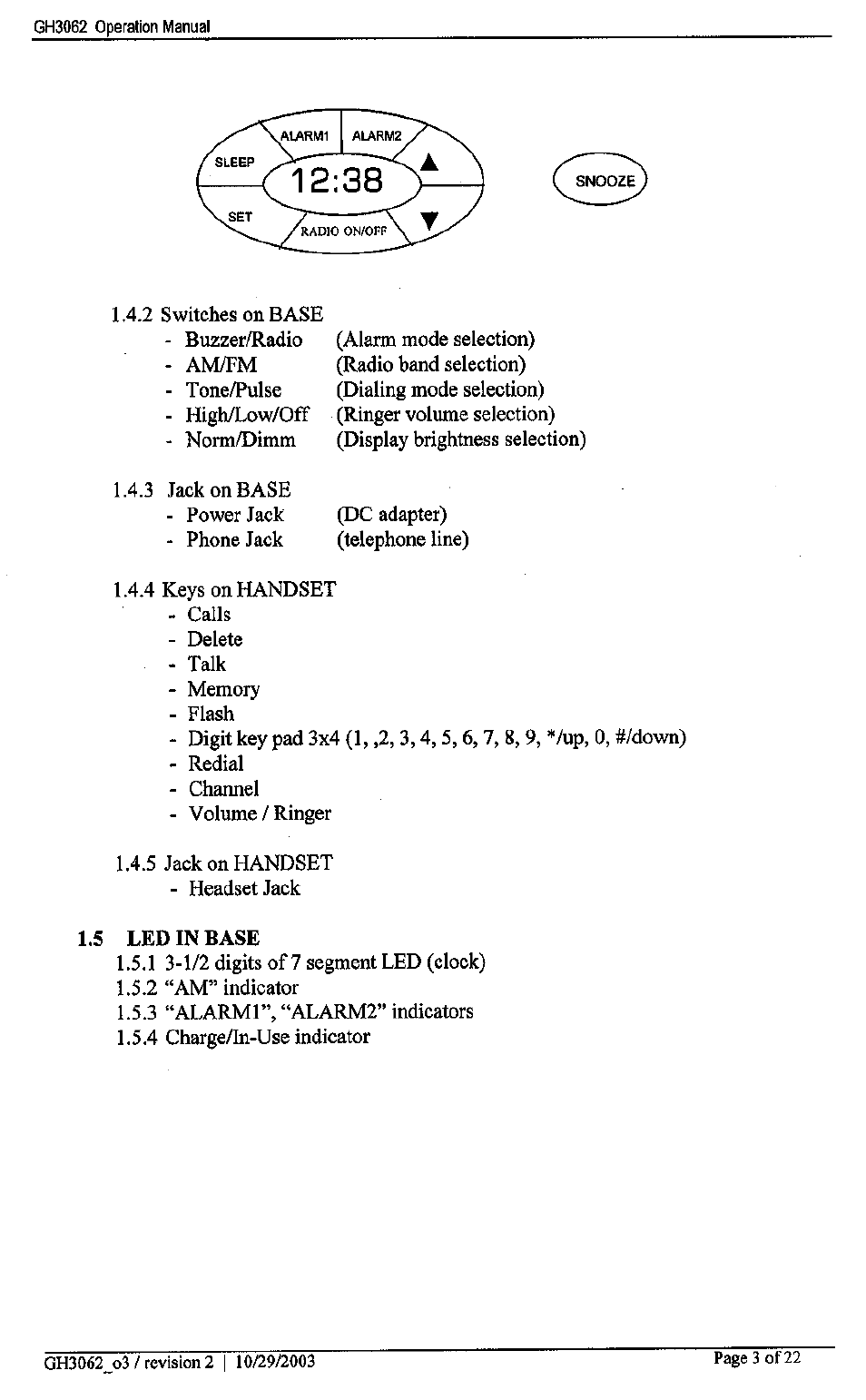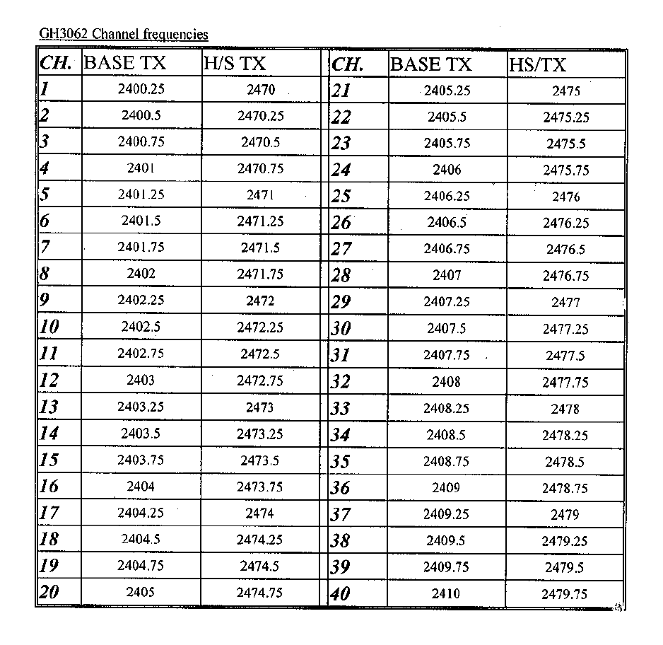 Continental Conair Limited 2.4G Cordless Phone w/radio FCC ID:LBBGH3062