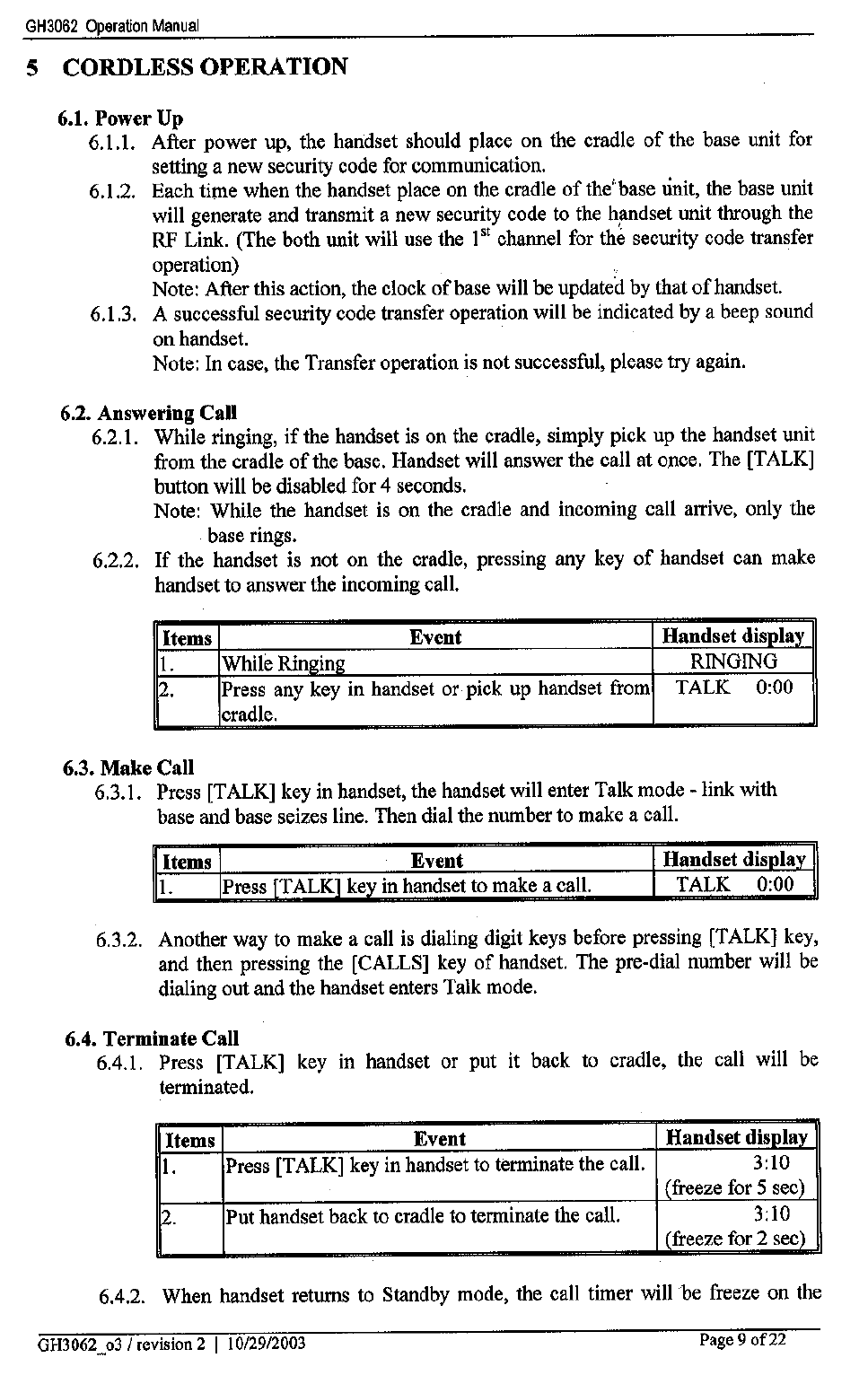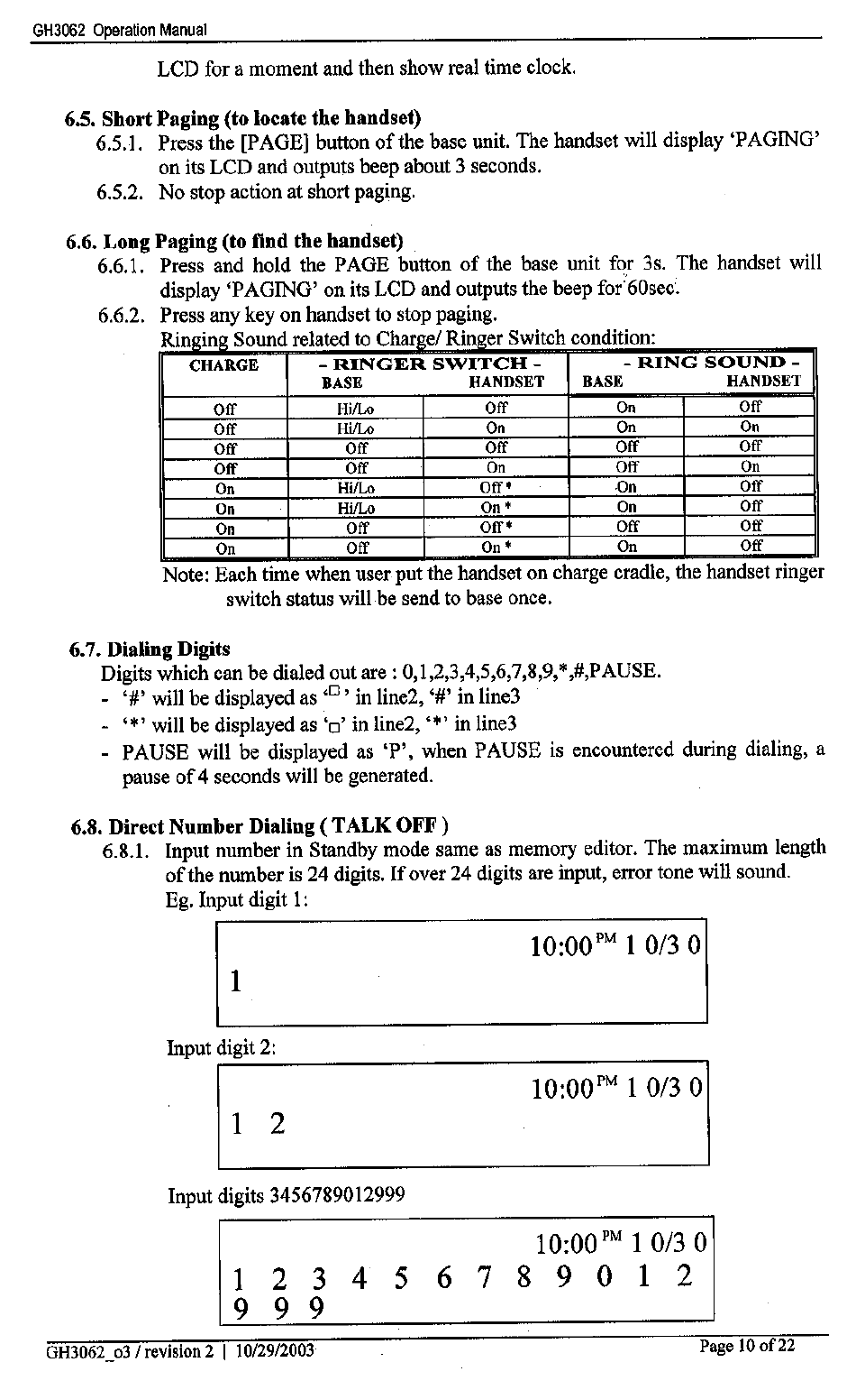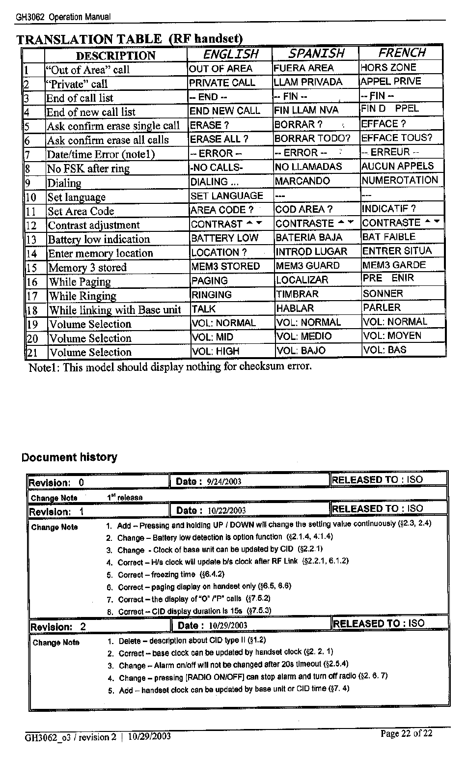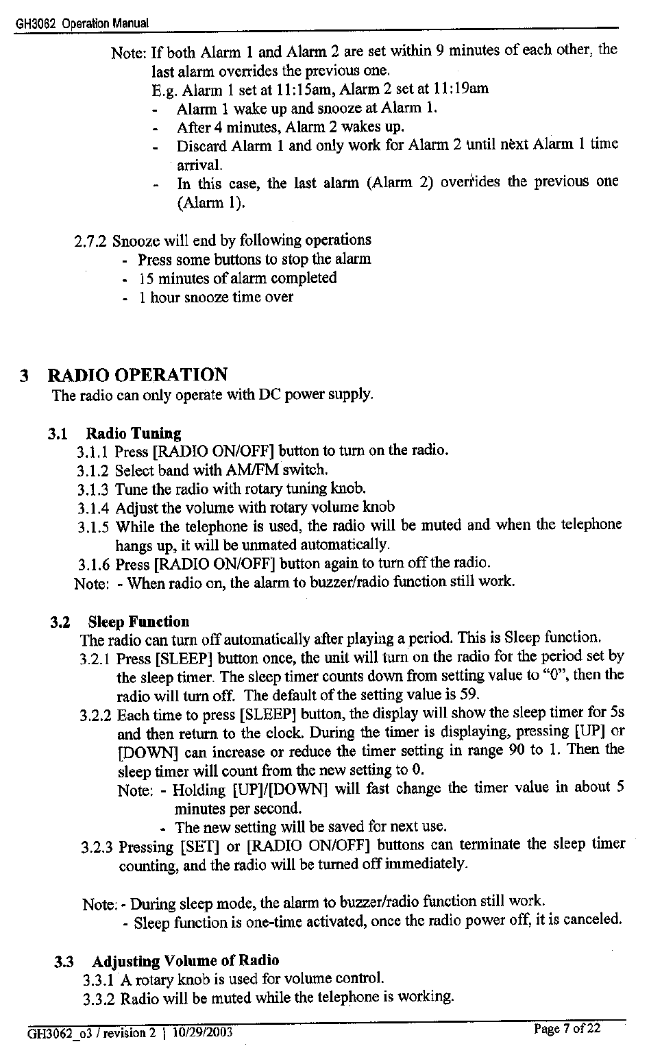 Continental Conair Limited 2.4G Cordless Phone w/radio FCC ID:LBBGH3062