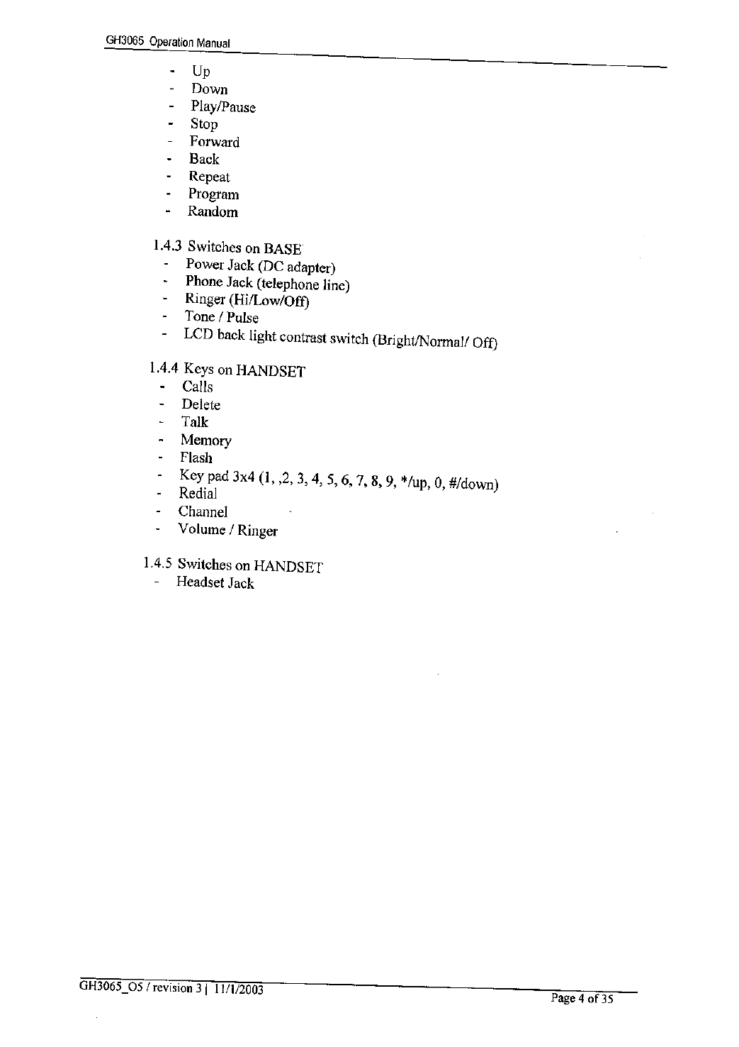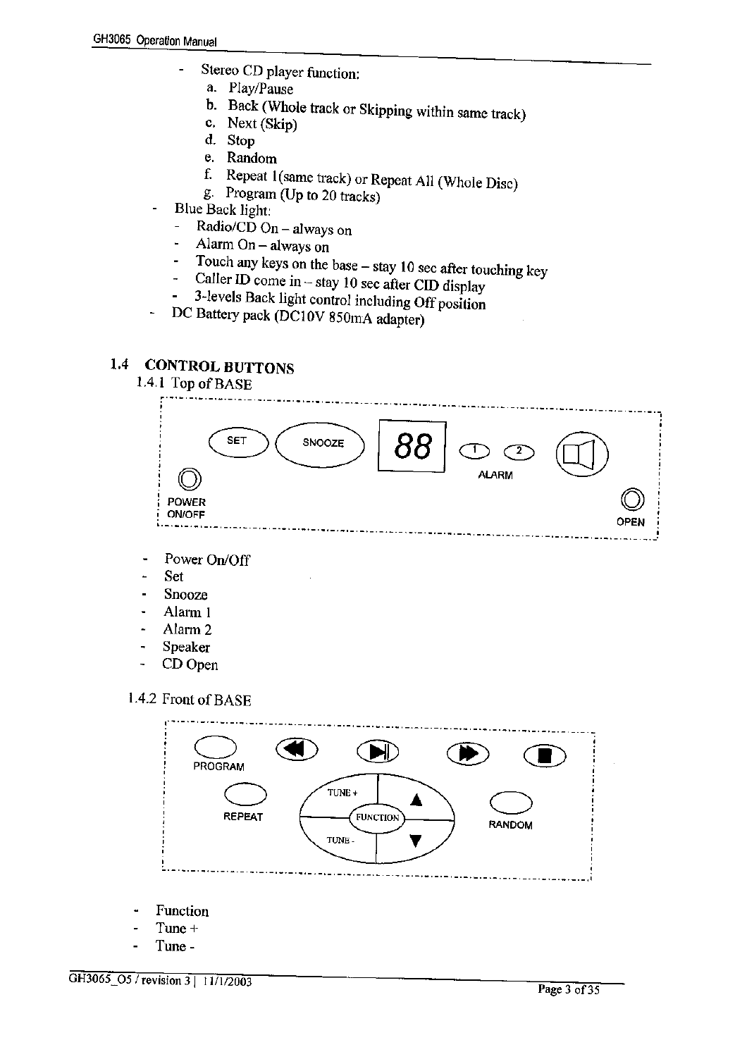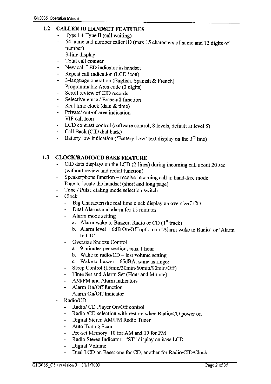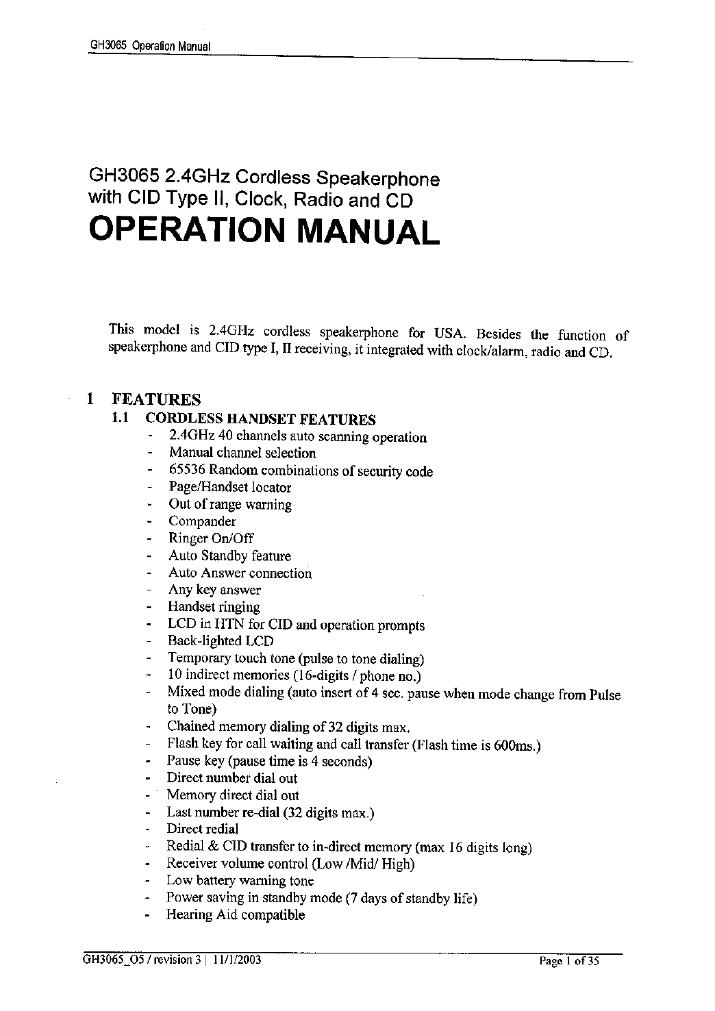 Continental Conair Limited 2.4G Cordless Phone w/radio & CD FCC ID:LBBGH3065
