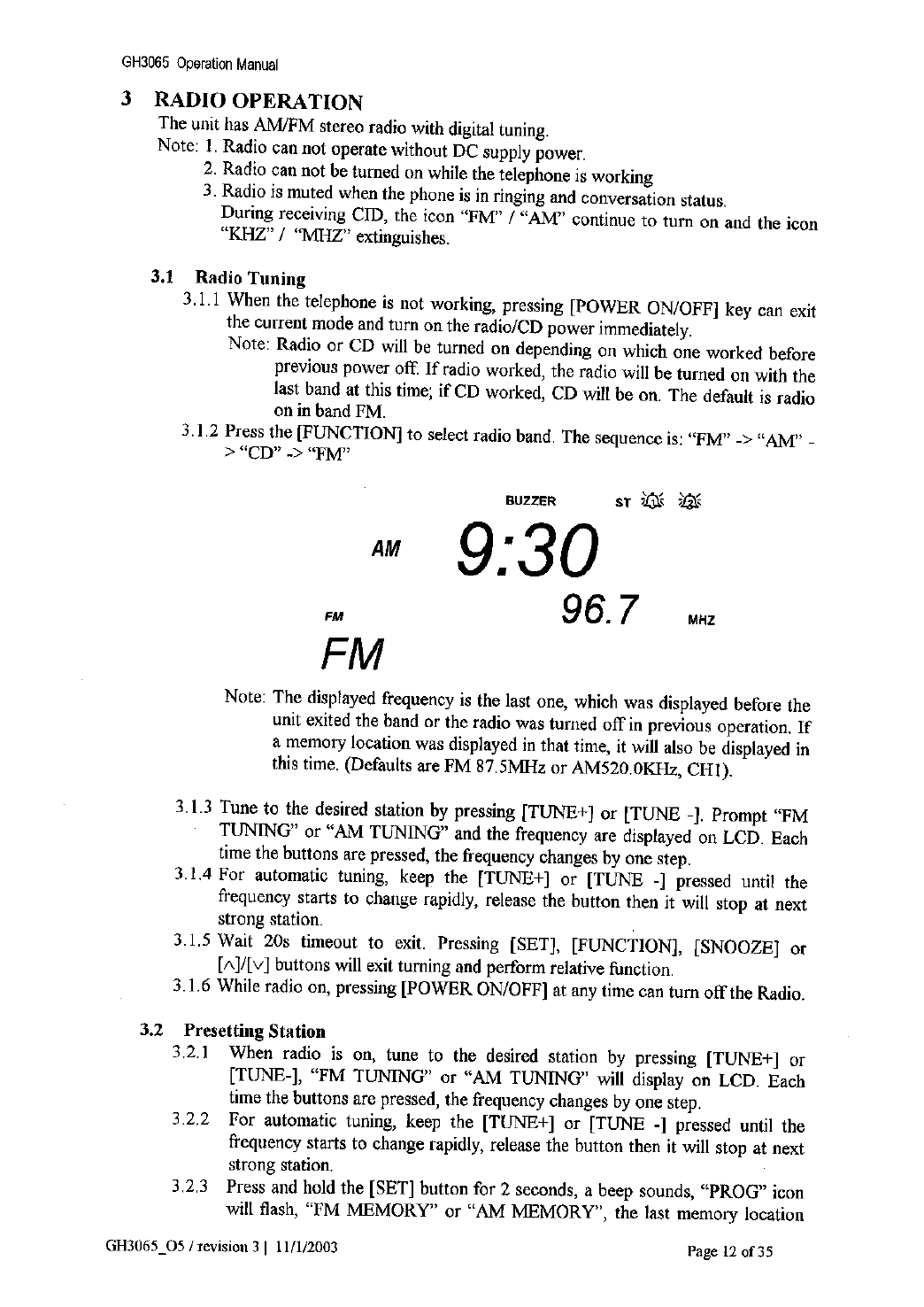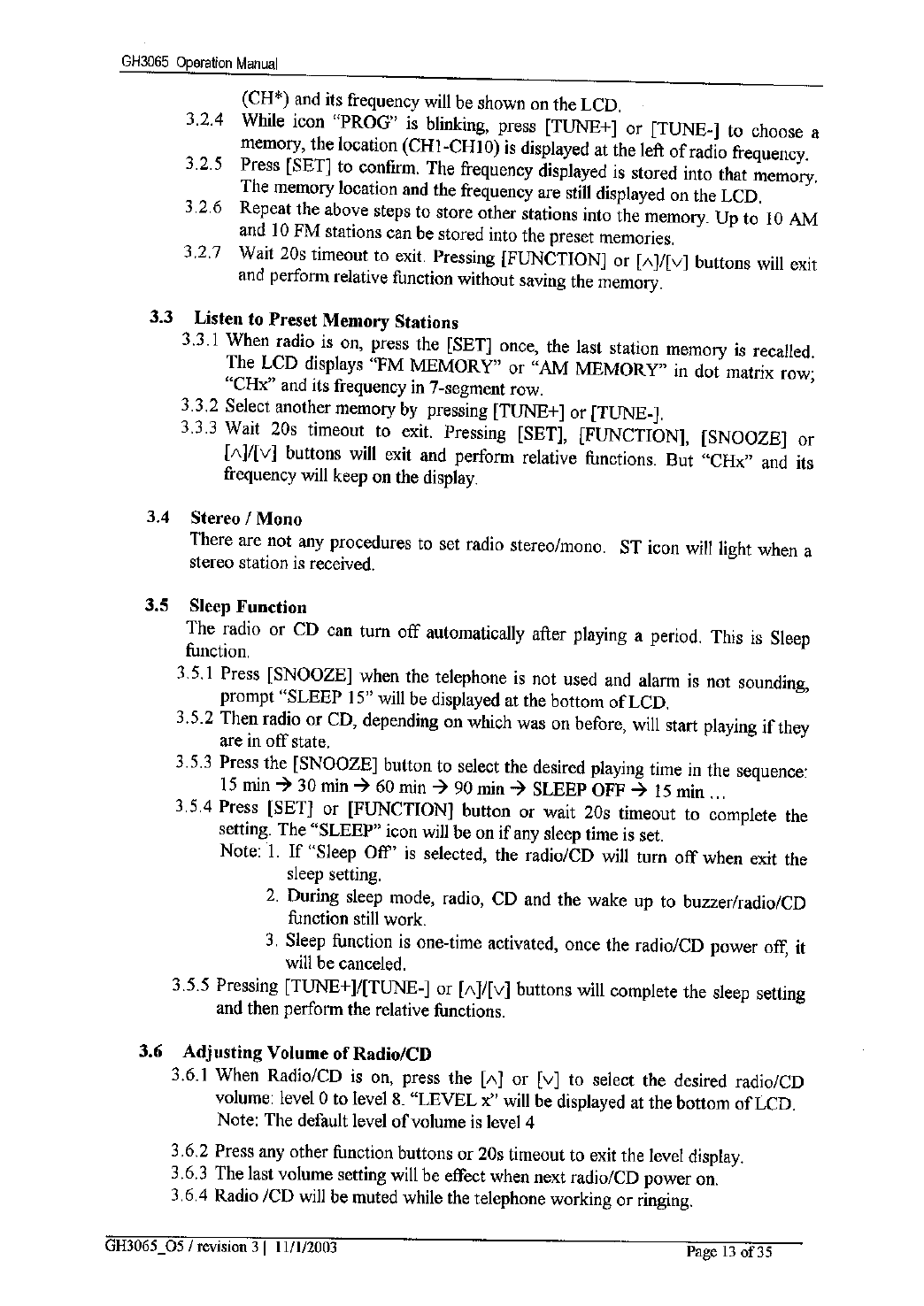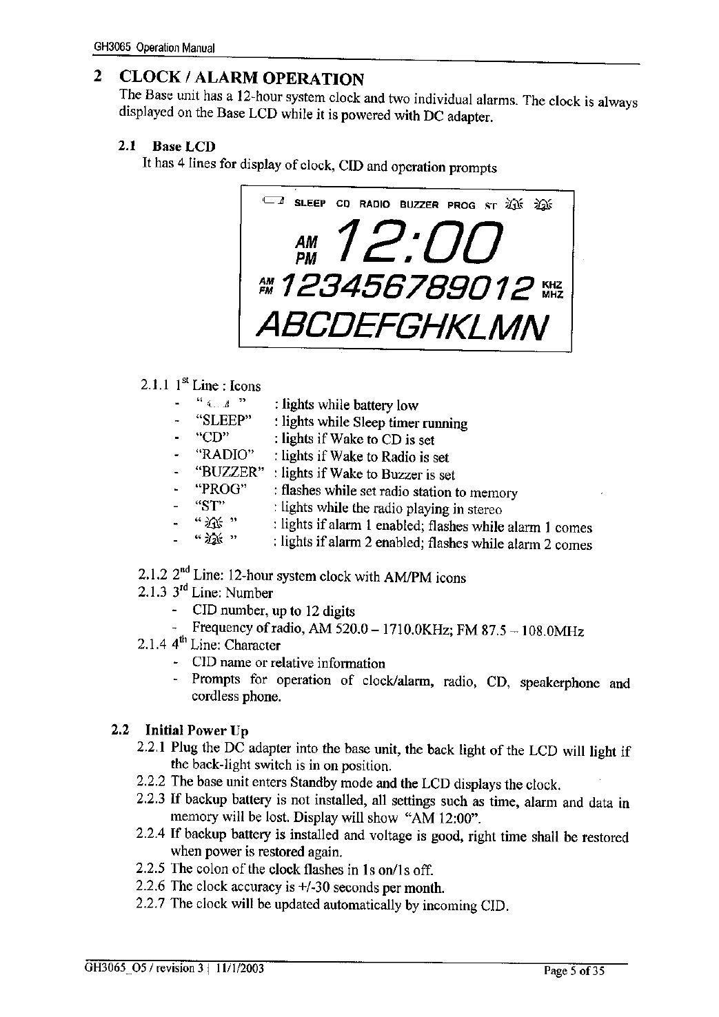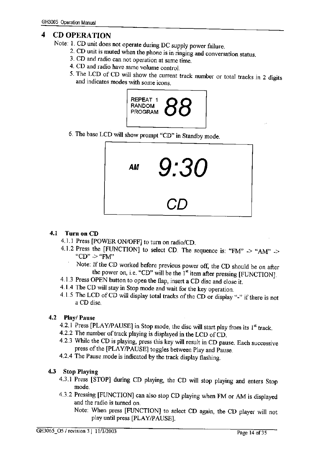 Continental Conair Limited 2.4G Cordless Phone w/radio & CD FCC ID:LBBGH3065