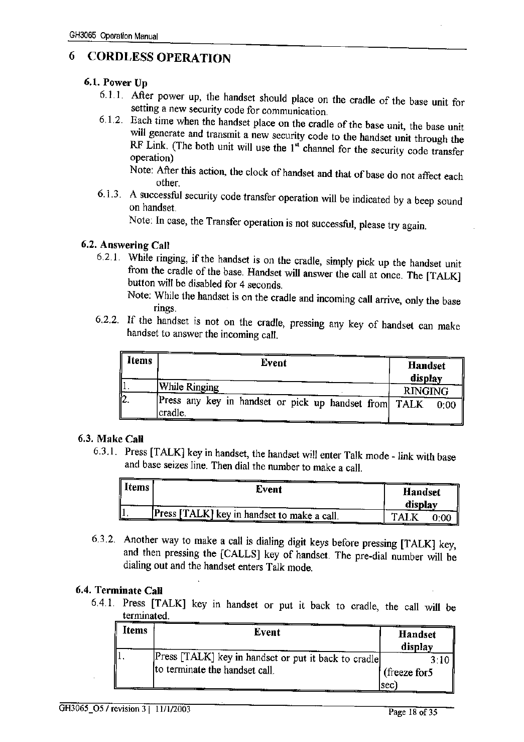 Continental Conair GH3065 CORDLESS TELEPHONE SYSTEM User Manual USERS MANUAL