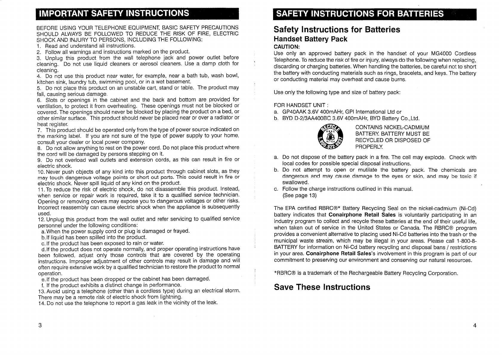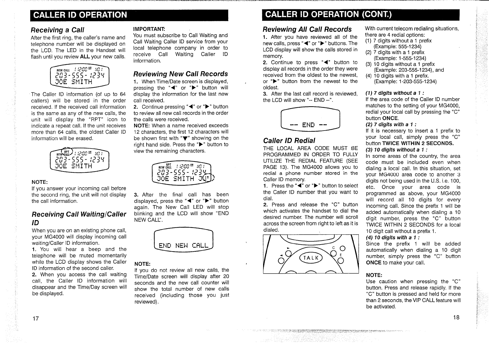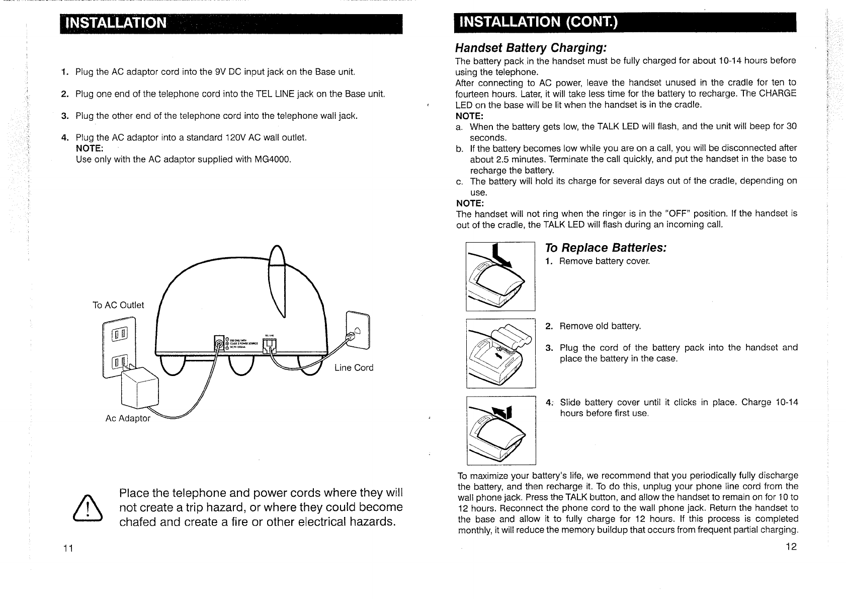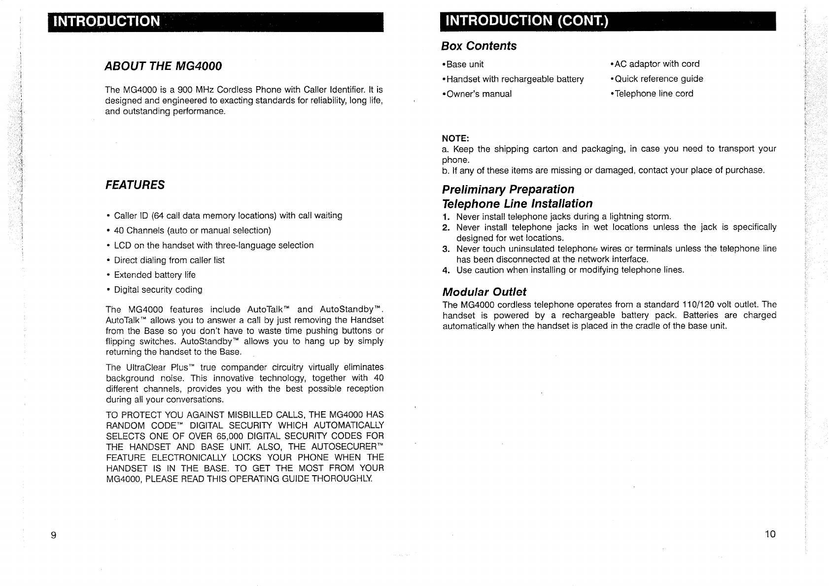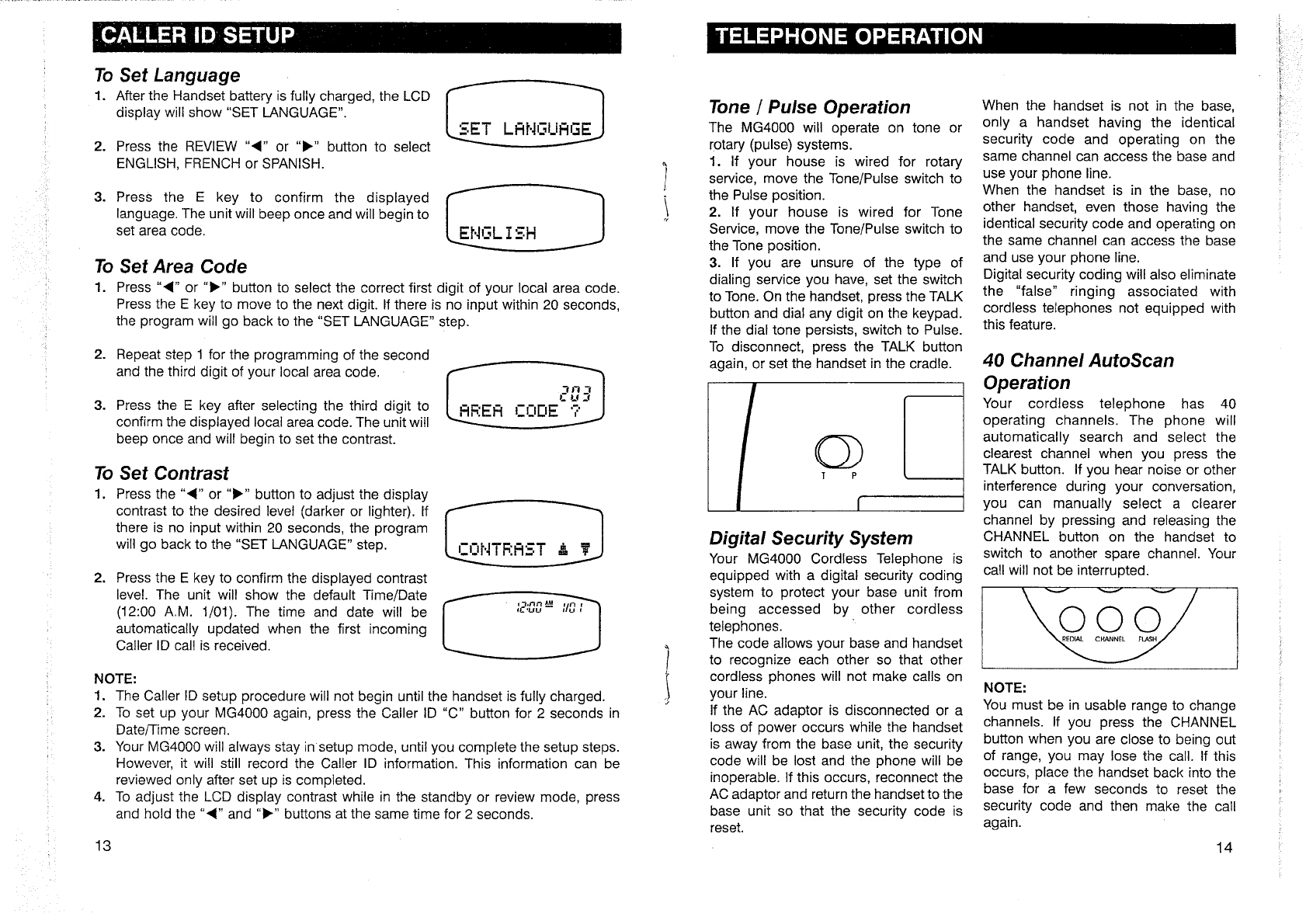 Continental Conair MG4000 900MHz Cordless Telephone w/Caller ID User Manual User Manaul