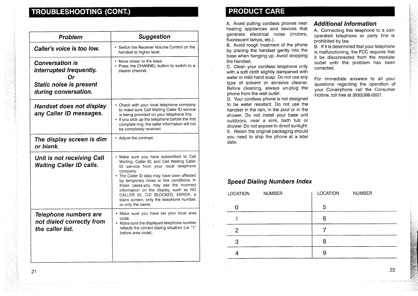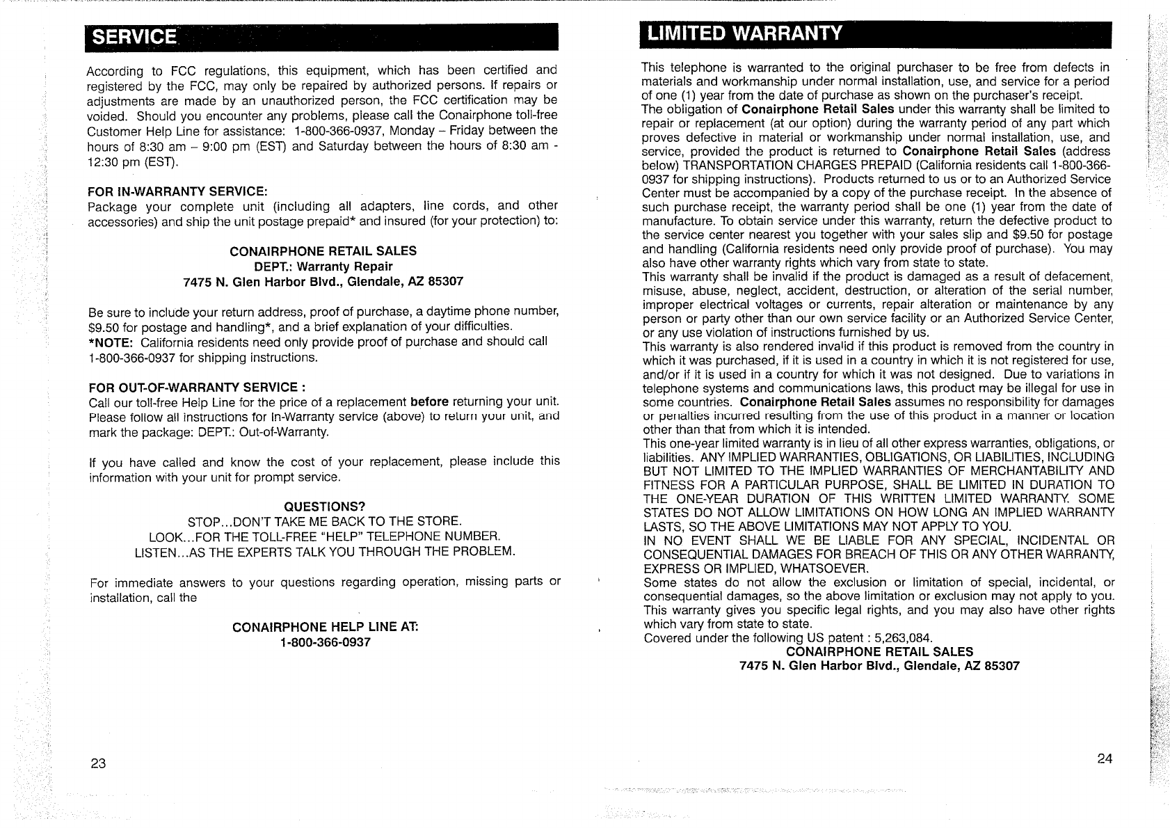 Continental Conair Limited 900MHz Cordless Telephone w/Caller ID User Manaul