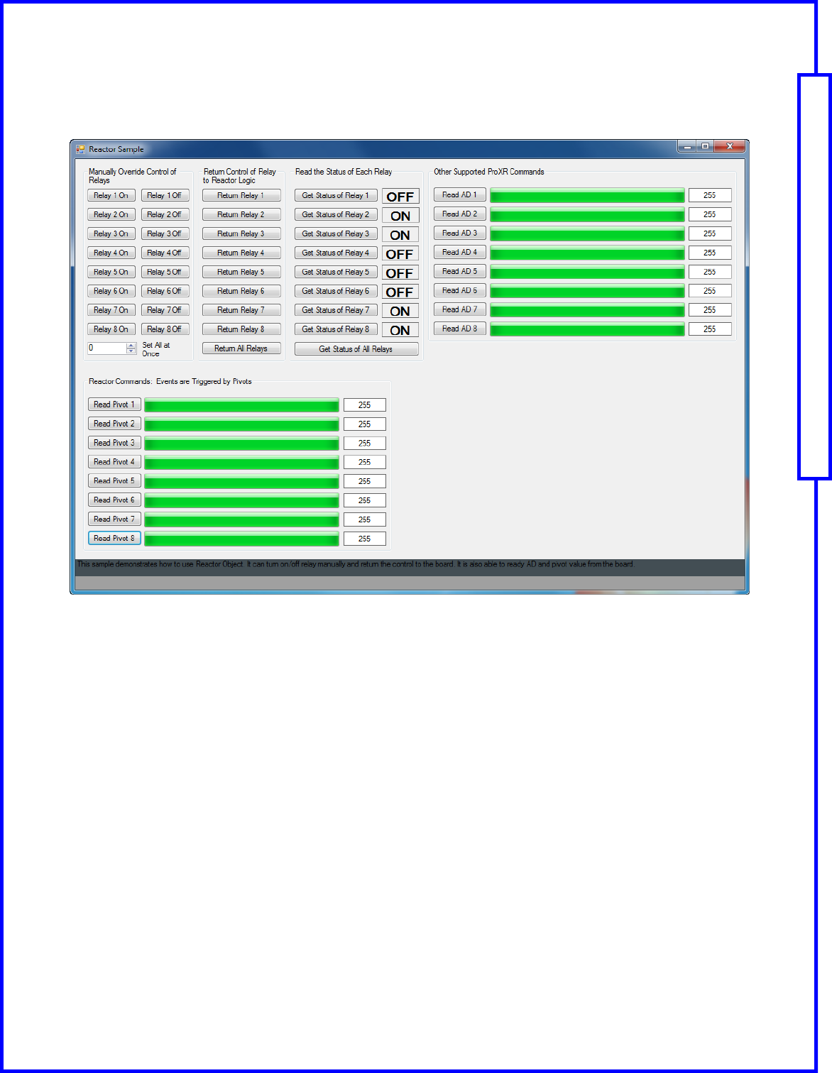 Set and Receive Relay Status and Read AD Input values for all Reactor Series Controllers.