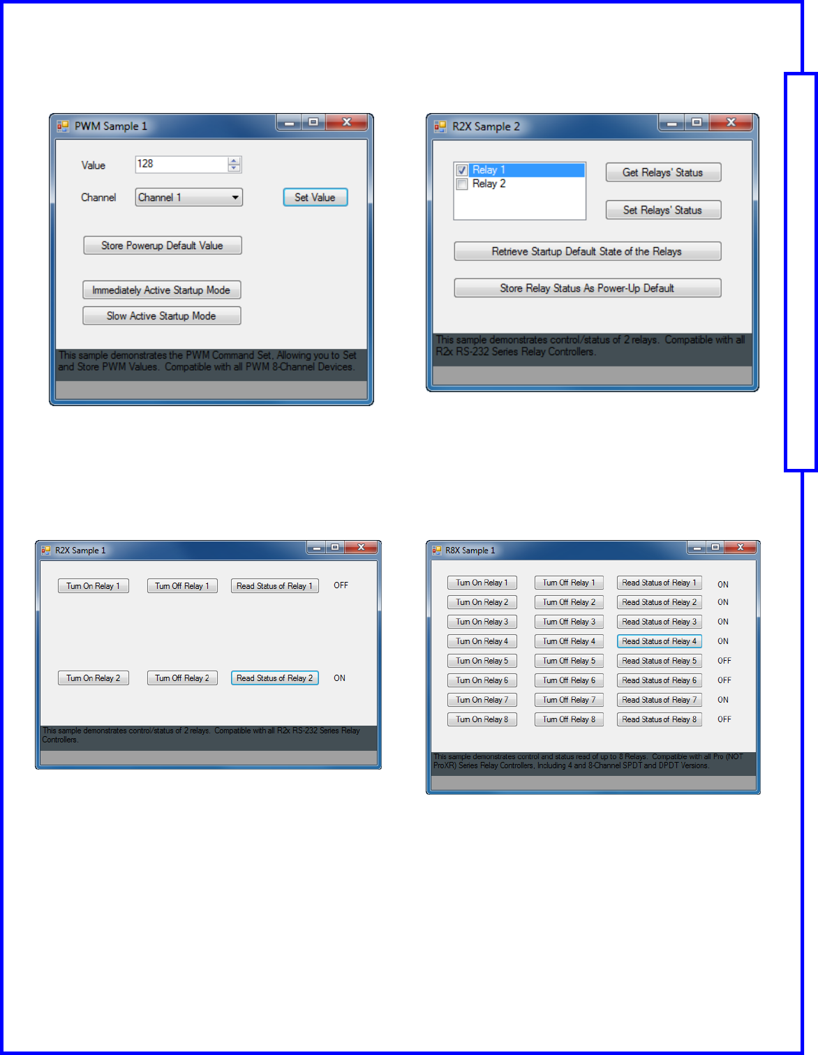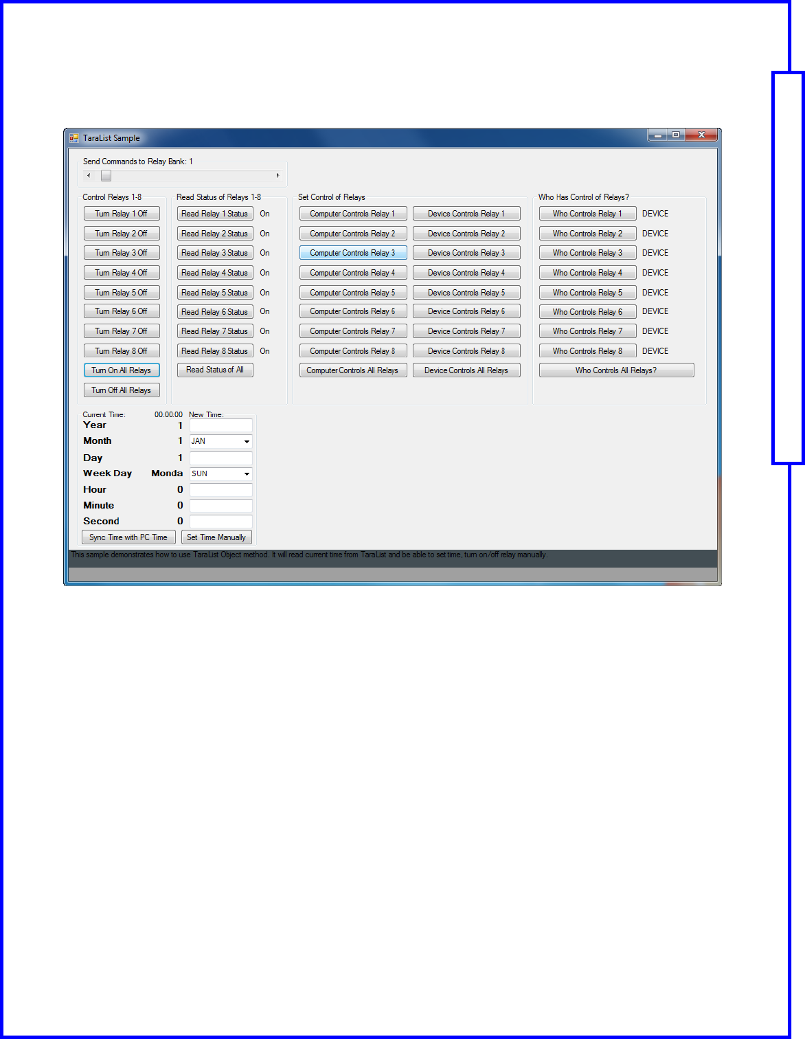 Set and Receive Relay Status and Read AD Input Values for all Tara list Series Controllers.