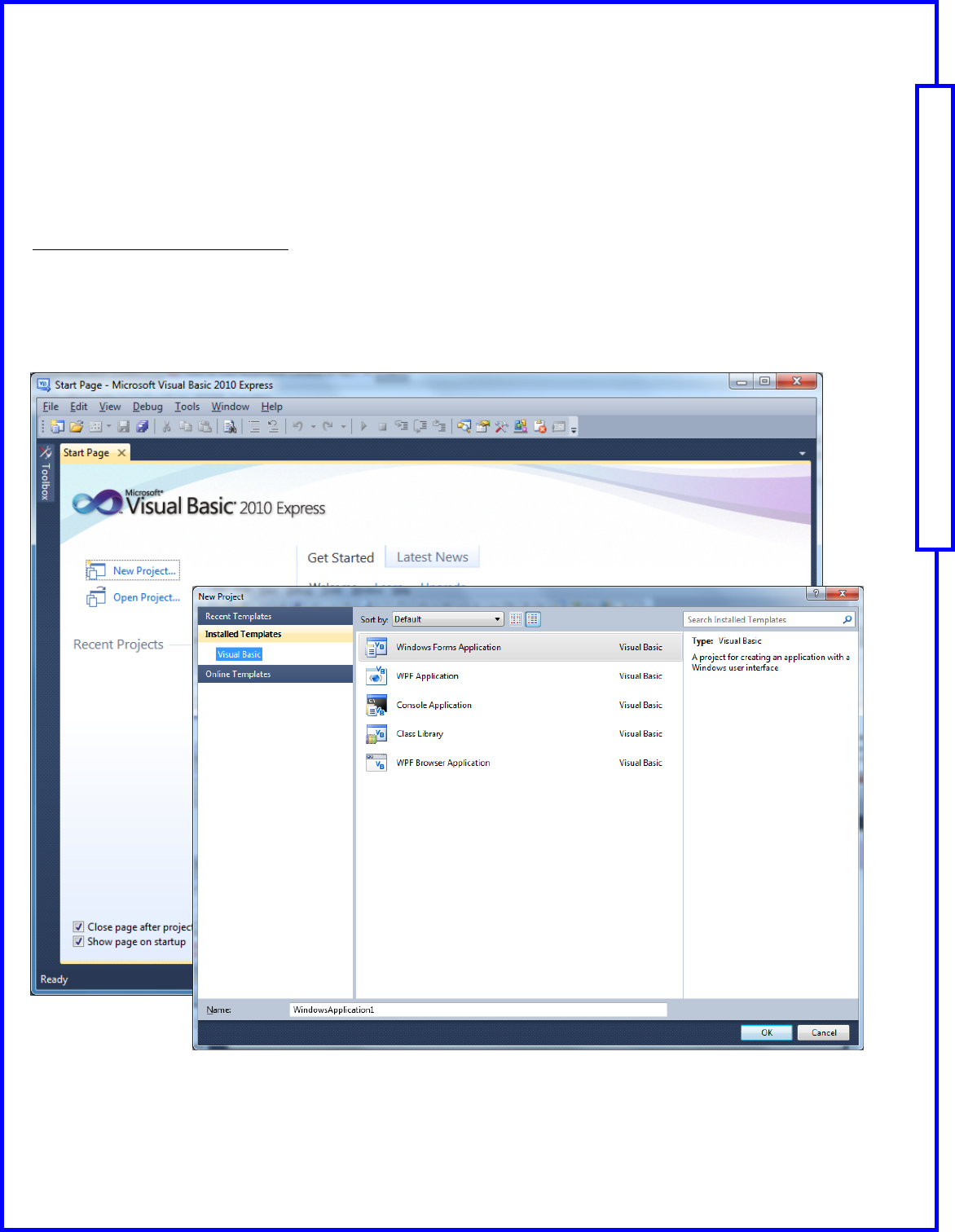 From the Windows Start Menu, open the Visual Basic Express 2010 program.