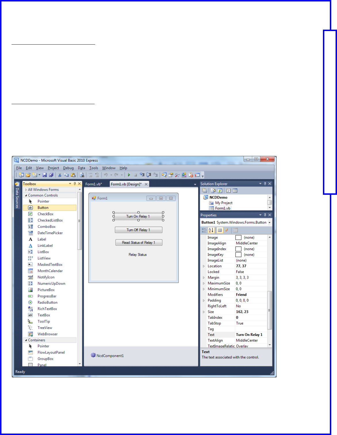 The NCD Component library is a plugin for the Microsoft Visual Basic that greatly simplifies the communications to the