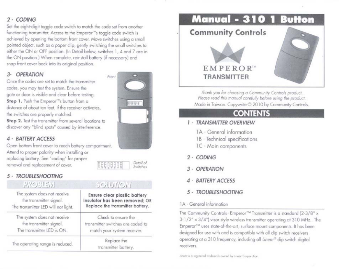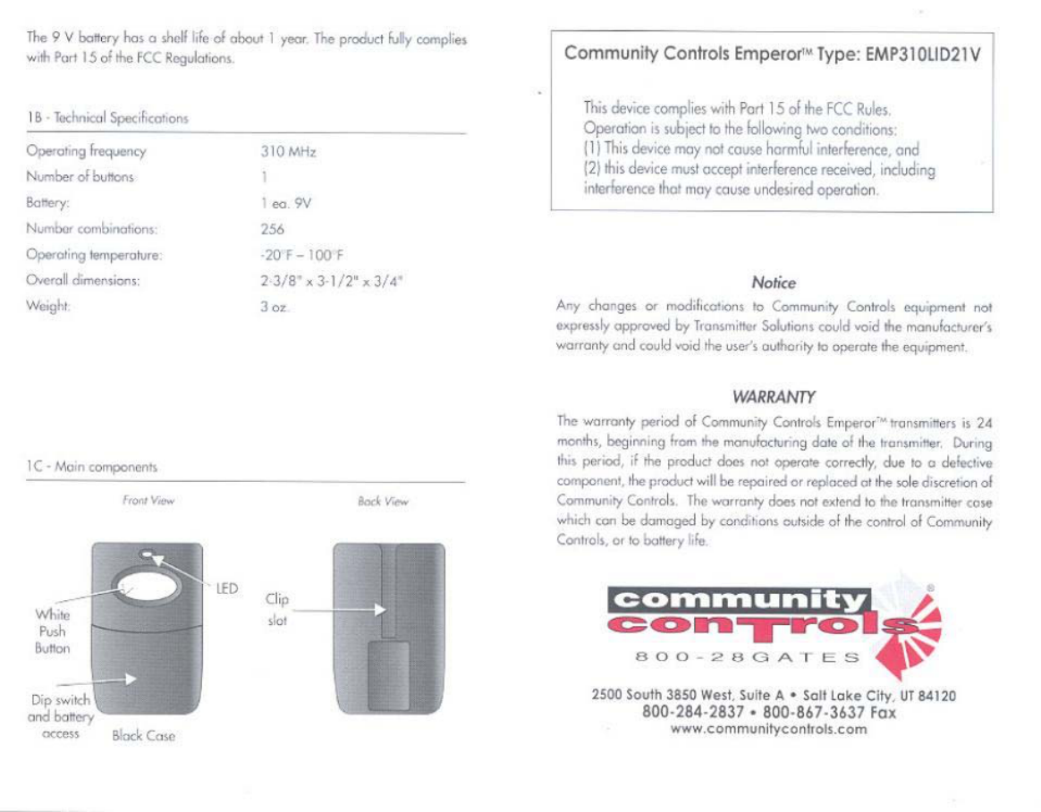 Controlled Entry Distributors 310LID21E Remote Controller User Manual Doc2