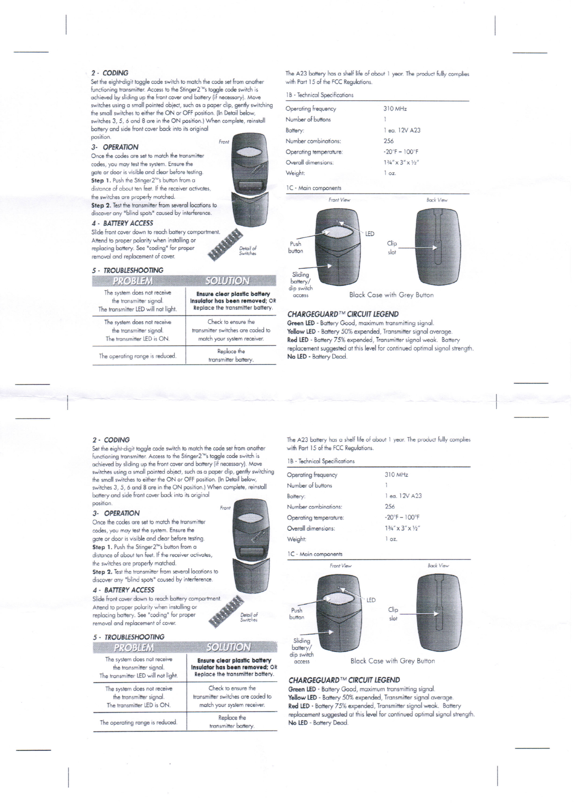 Controlled Entry Distributors 310LID21V2-CG Remote Controller User Manual
