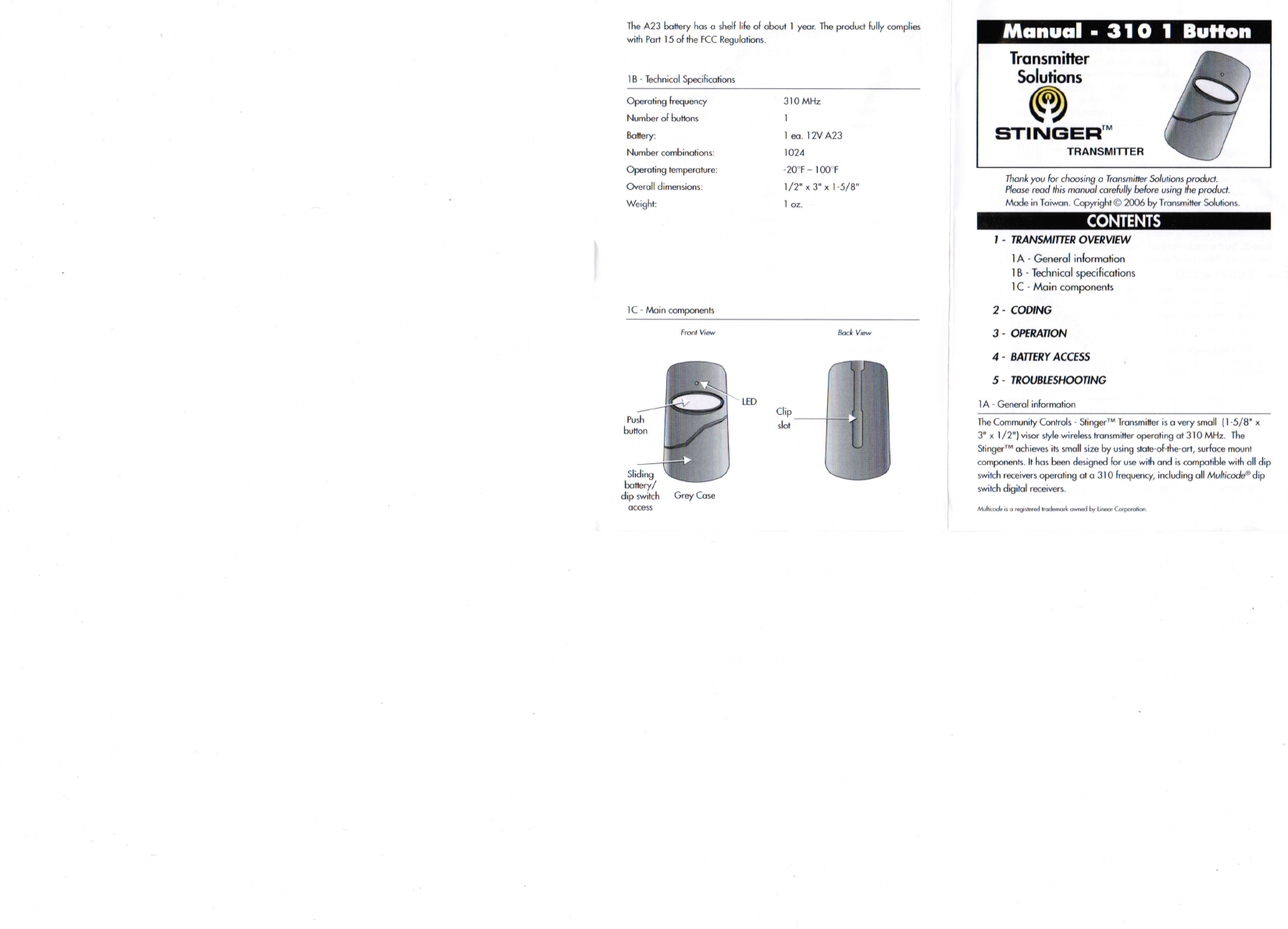Controlled Entry Distributors, Inc. Remote Controller Users Manual