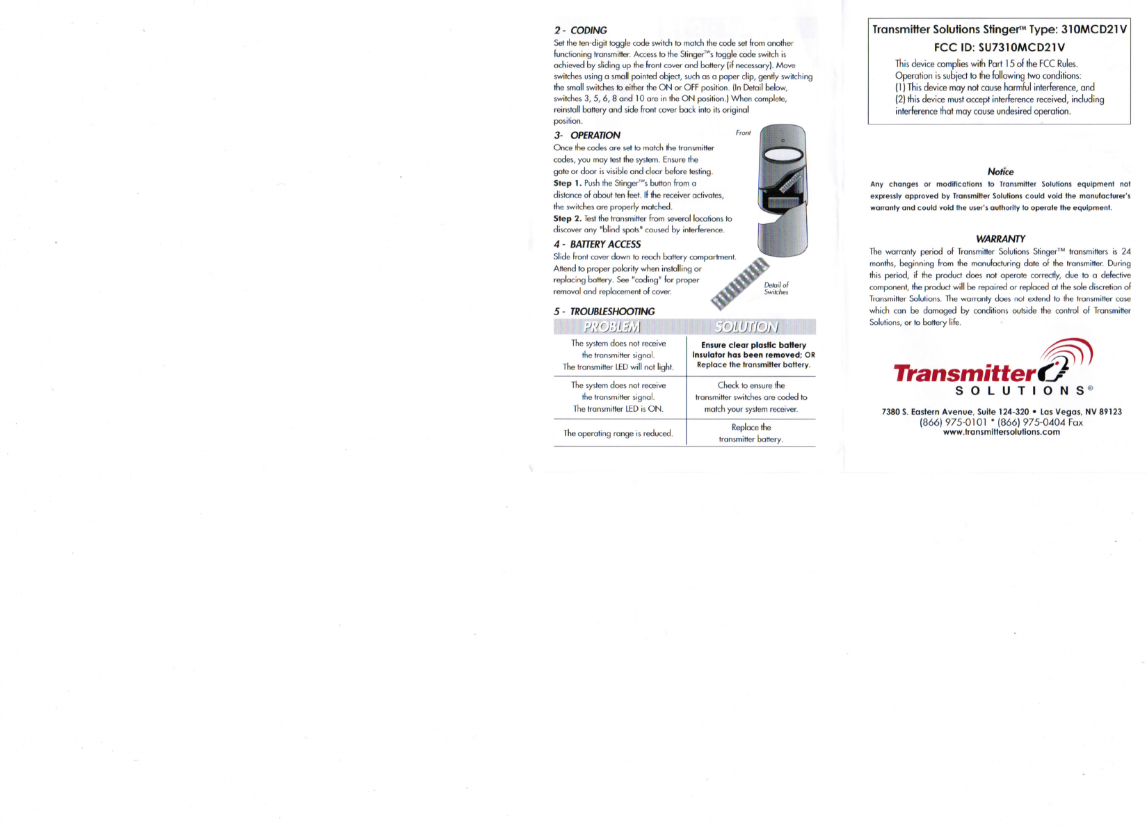 Controlled Entry Distributors 310MCD21V Remote Controller User Manual