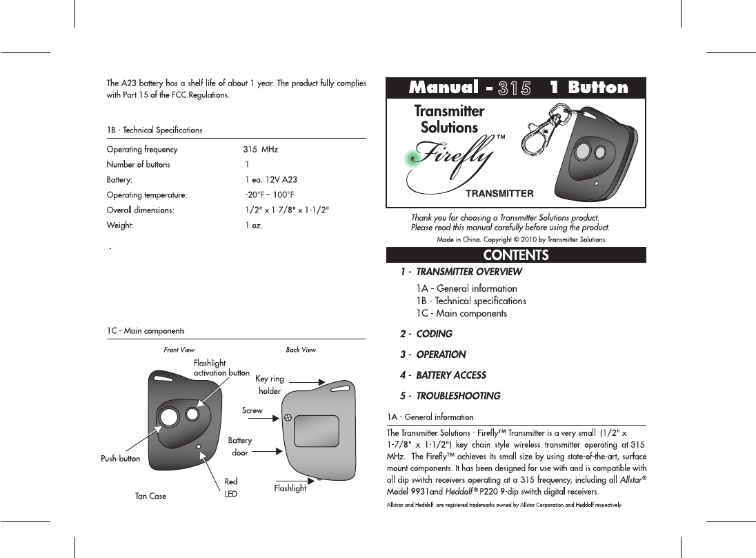Controlled Entry Distributors 315LMD21K Community Controls Firefly User Manual TS Firefly 318 1B Side 2R ai