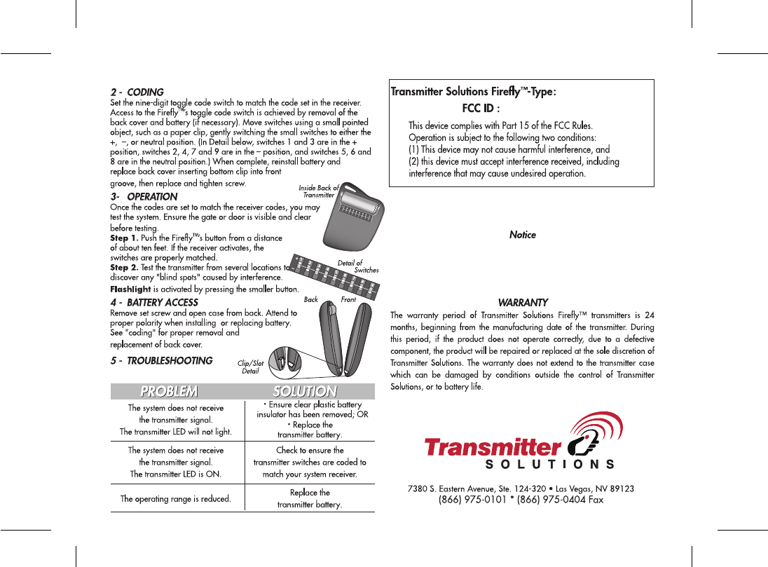expressly approved by Transmitter Solutions could void the manufacturer’s