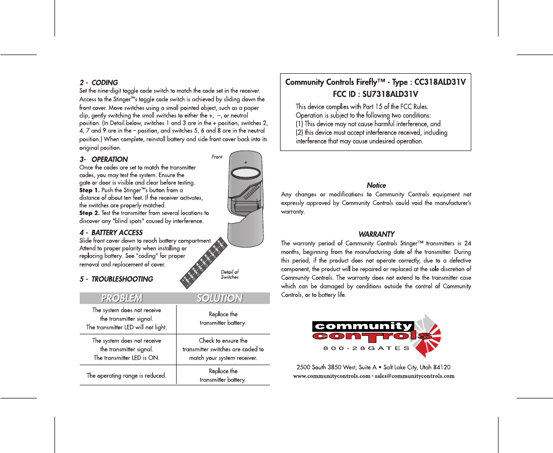 Controlled Entry Distributors 318ALD31V Model 318ALD31V User Manual CC Sting318 1BSd1Outline eps
