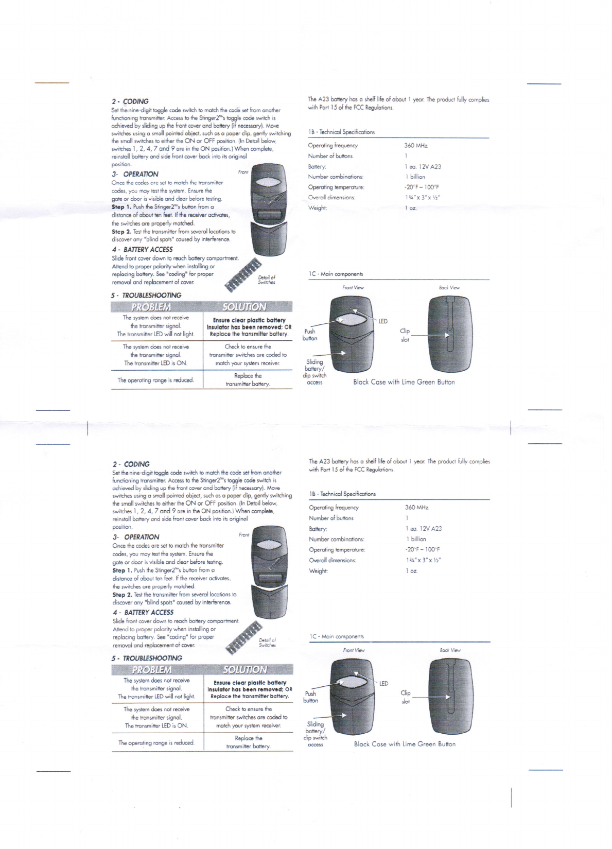 Controlled Entry Distributors, Inc. Remote Controller Users Manual