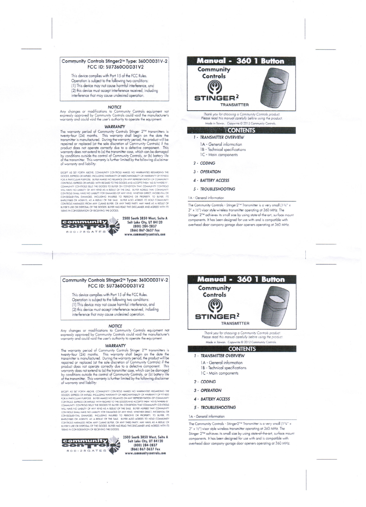 Controlled Entry Distributors 360ODD31V2 Remote Controller User Manual