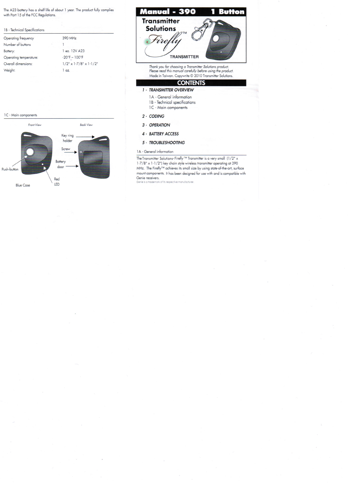 Controlled Entry Distributors 390GED21K Remote Controller User Manual