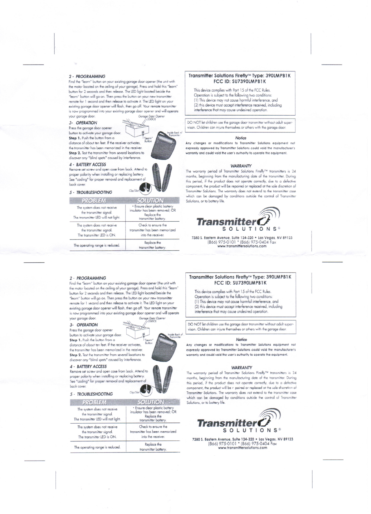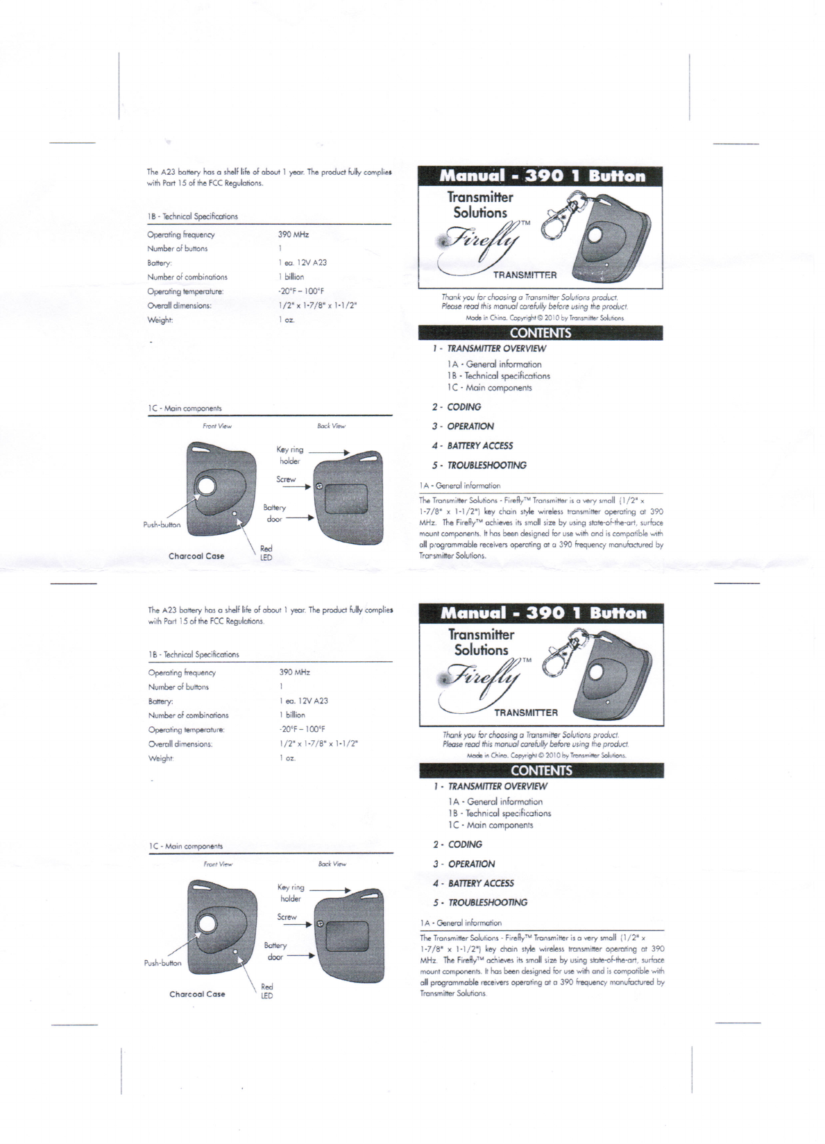 Controlled Entry Distributors 390LMPB1K Remote Controller User Manual