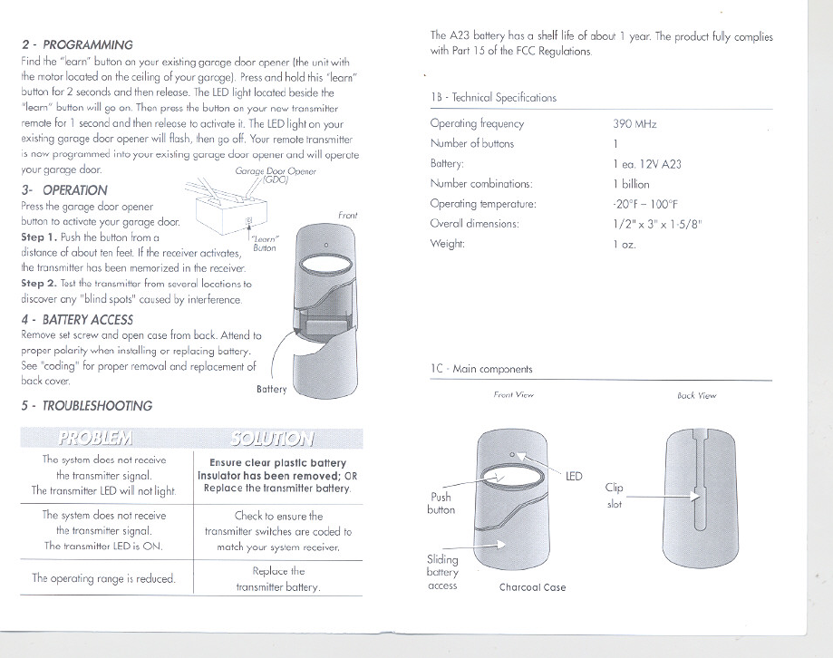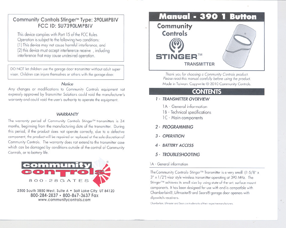 Controlled Entry Distributors 390LMPB1V Remote Controller User Manual