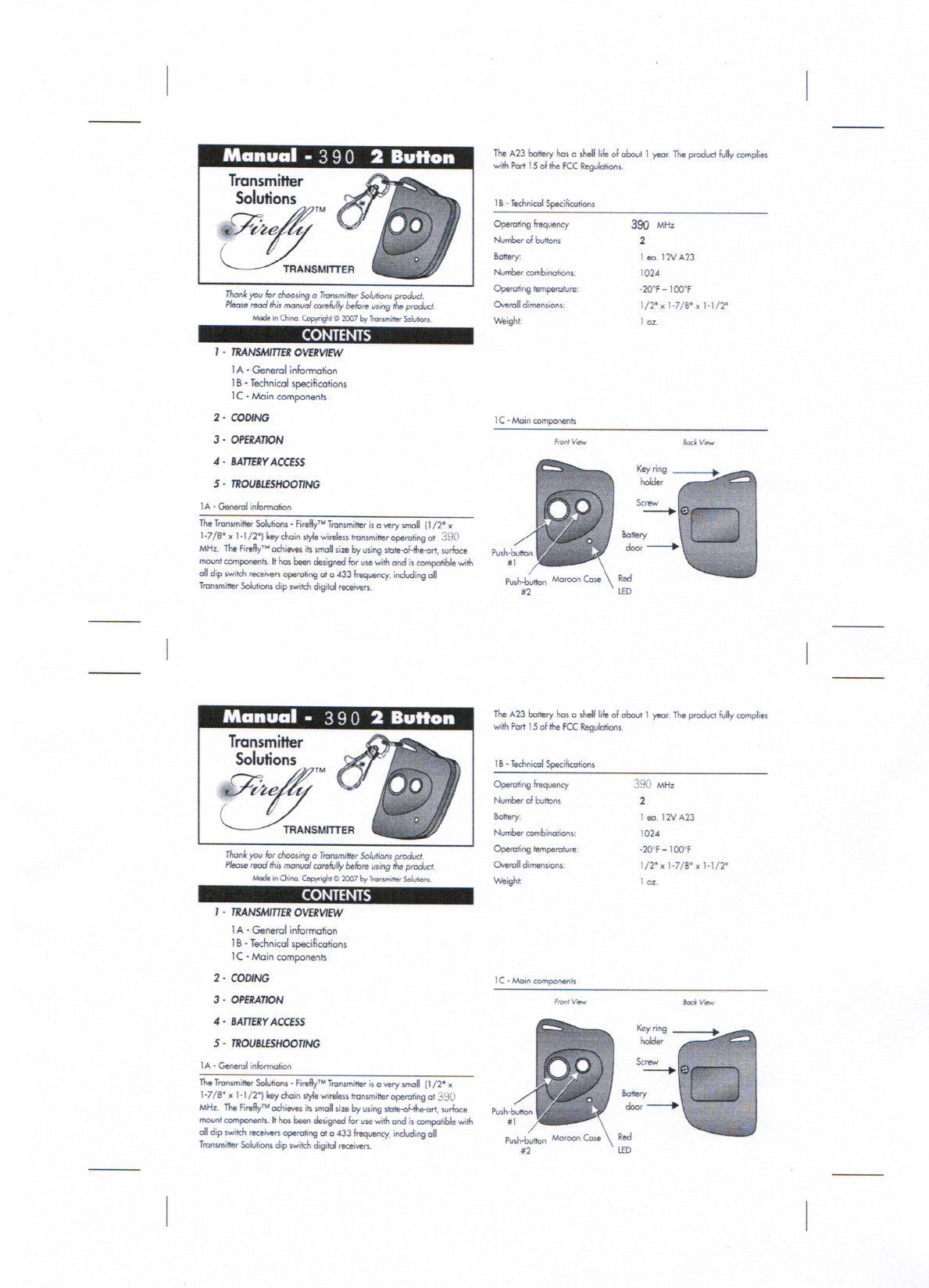 Controlled Entry Distributors 390LMPB2K Remote Controller User Manual