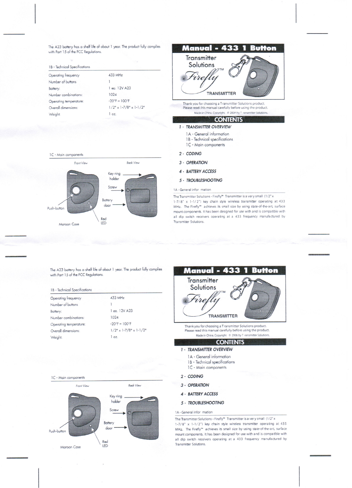 Controlled Entry Distributors 433TSD21K Remote Controller User Manual