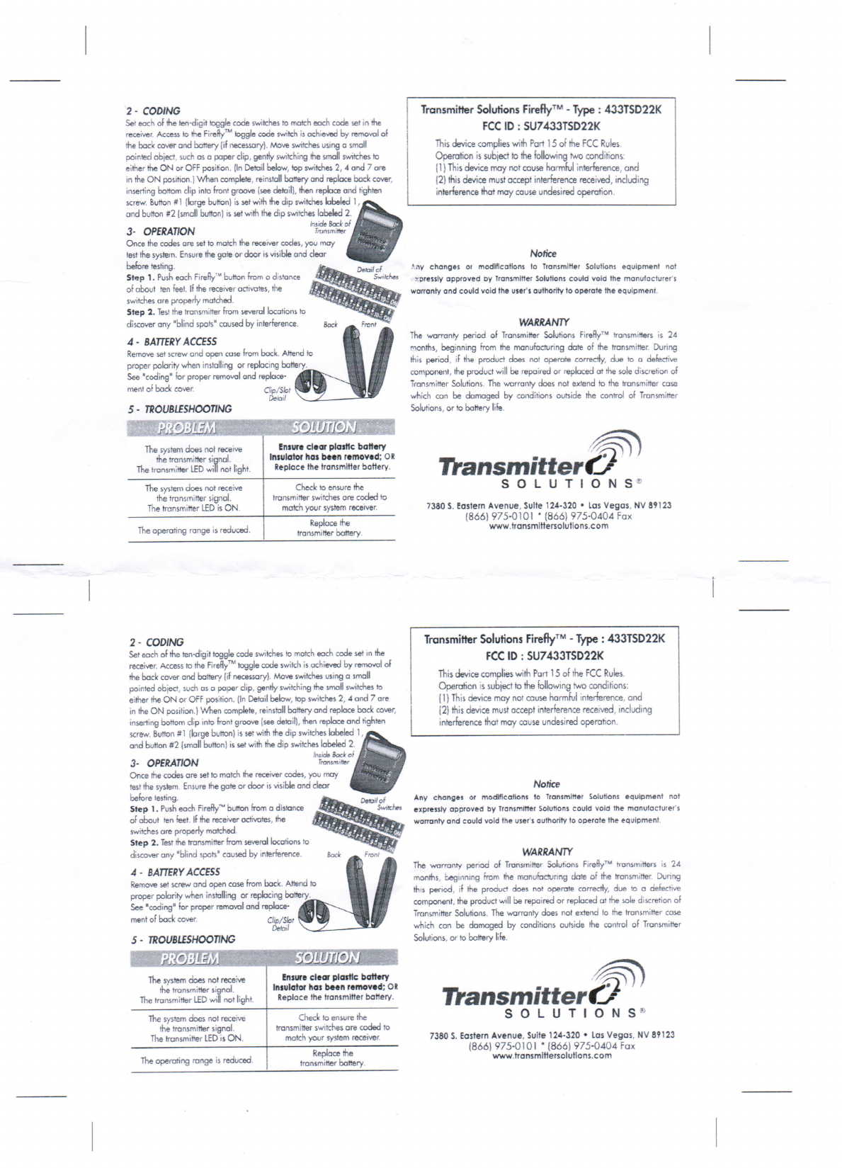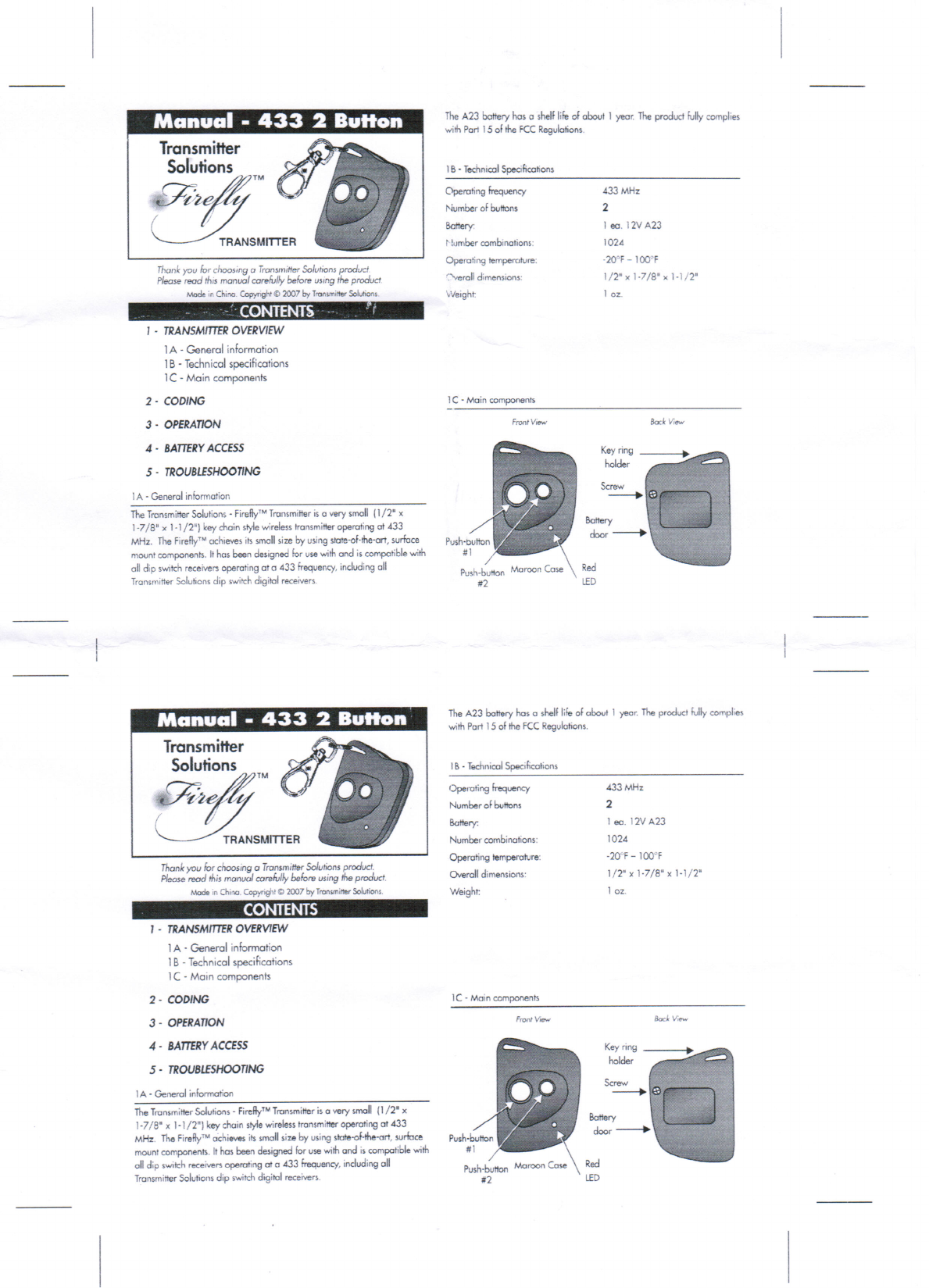 Controlled Entry Distributors 433TSD22K Remote Controller User Manual