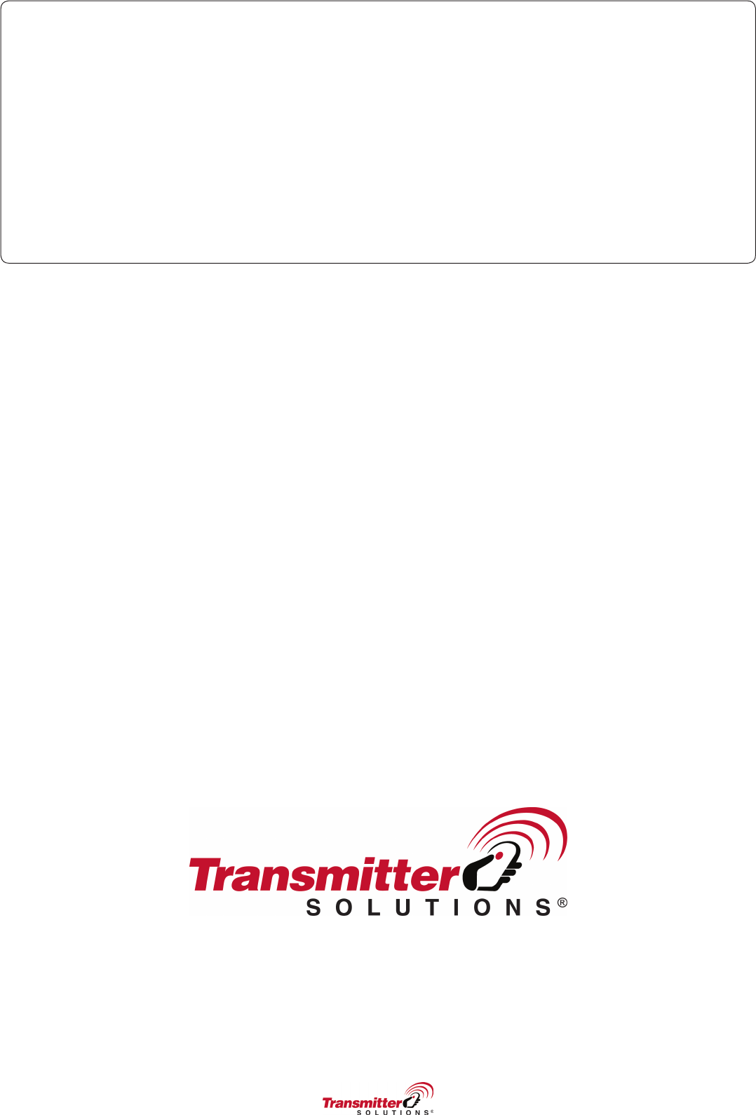 Any changes or modication to Transmitter Solutions equipment not expressly