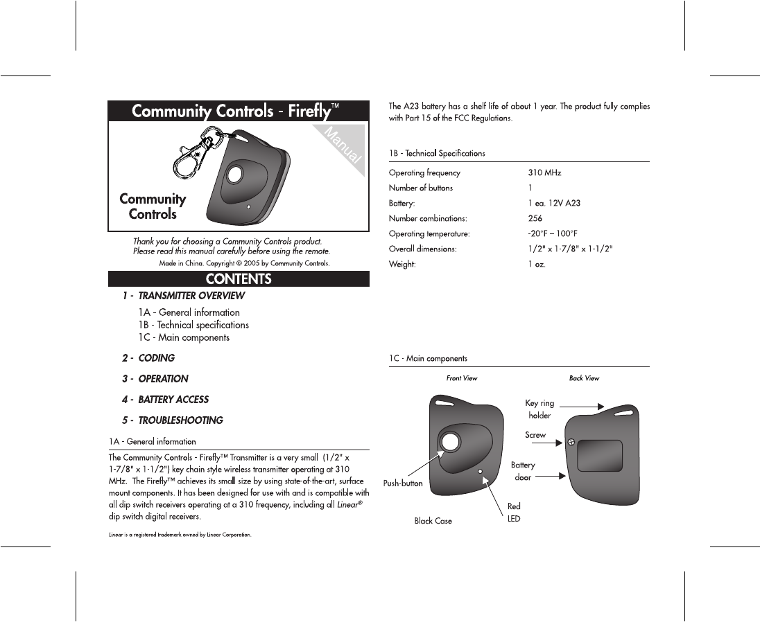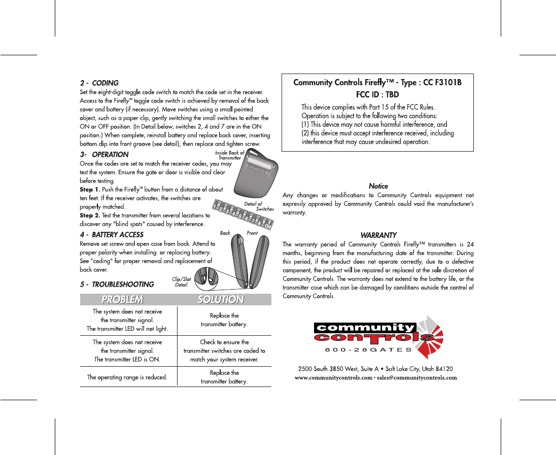 Controlled Entry Distributors CCF31B Model CCF3101B User Manual CC Firefly Side 1 D Outlines ai