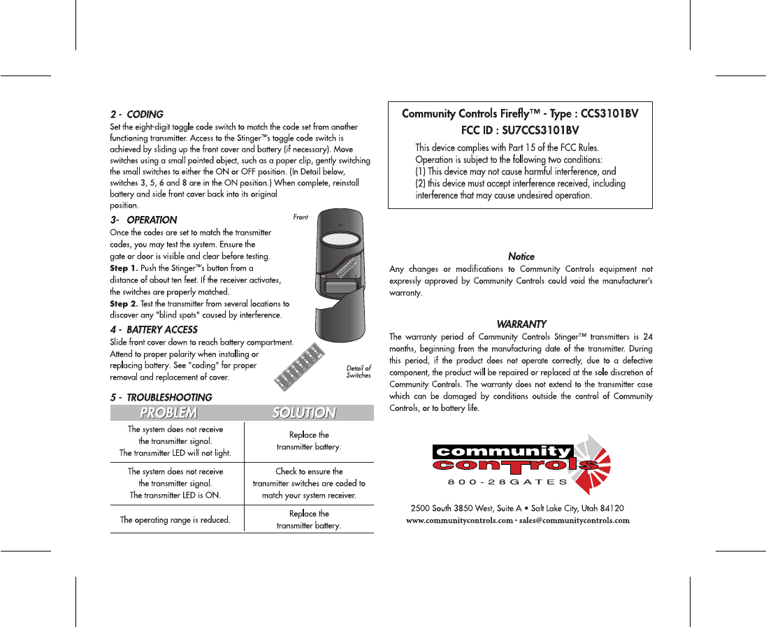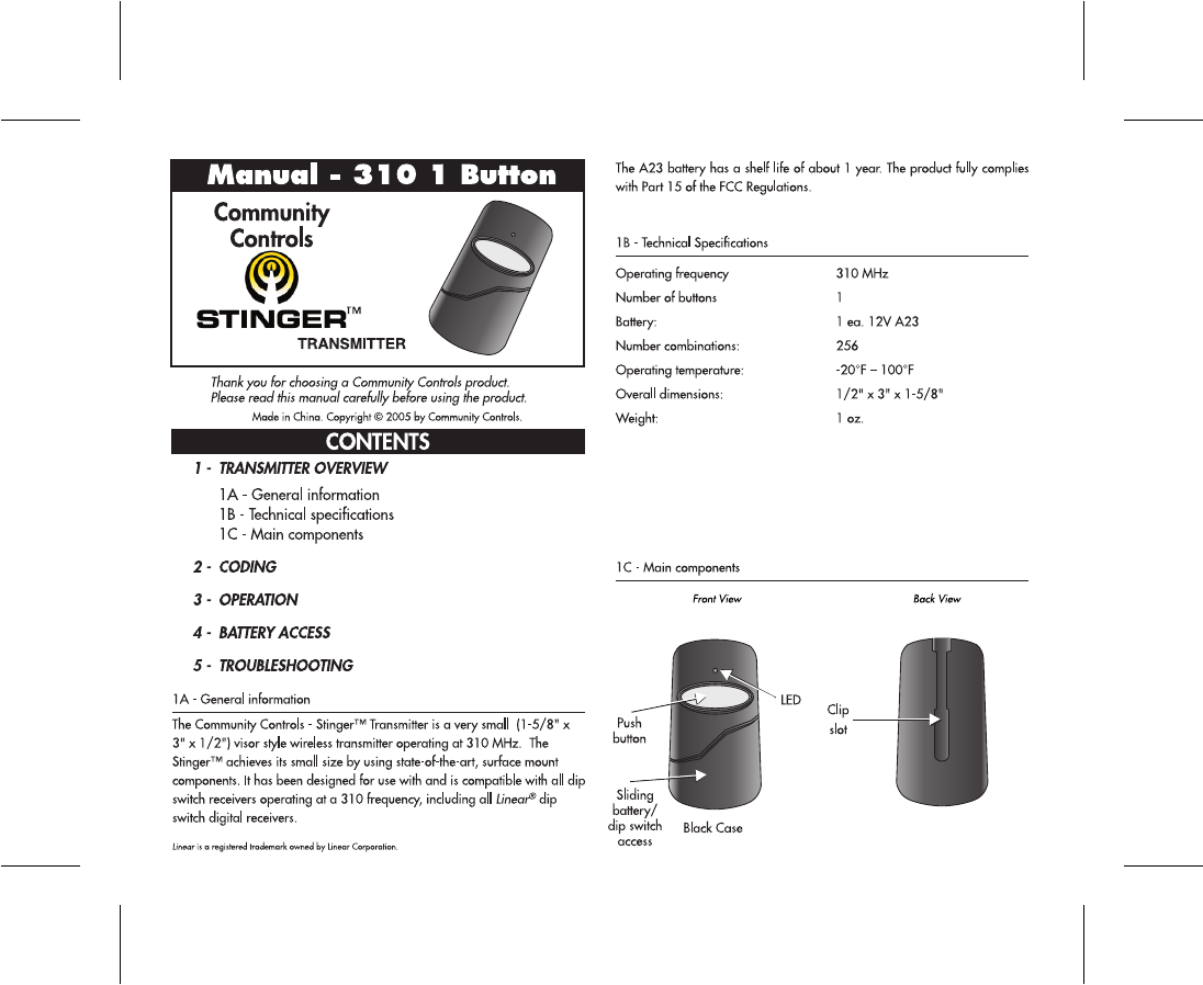 Controlled Entry Distributors CCS3101BV Model CCS3101BV User Manual CC Stinger 310 1B Side 1 ai