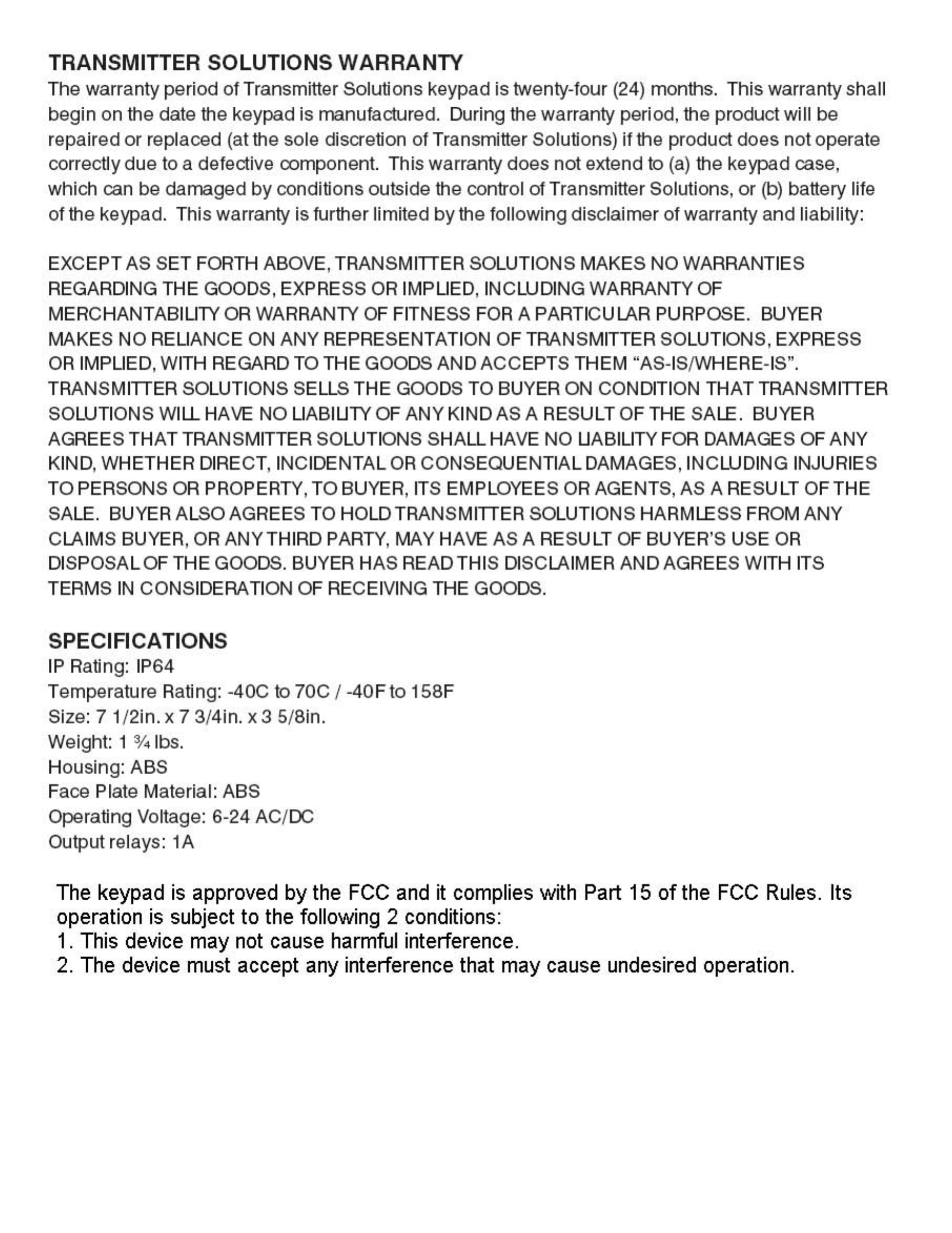 Toggle Code Entering Access Toggle Code will toggle the keypad to continuously activate.