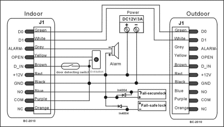 In this mode two BC-2010 units are used for a single door, one for entry and the other for exit.
