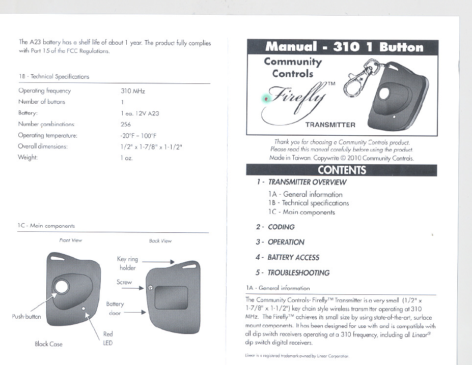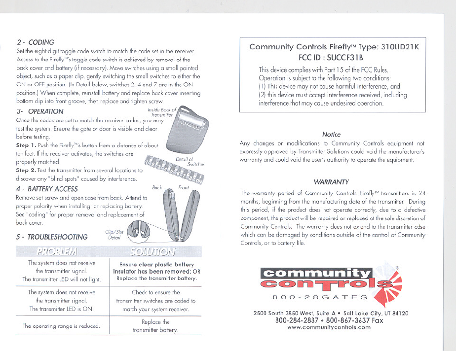Controlled Entry Distributors FFII310LID21K Remote Controller User Manual