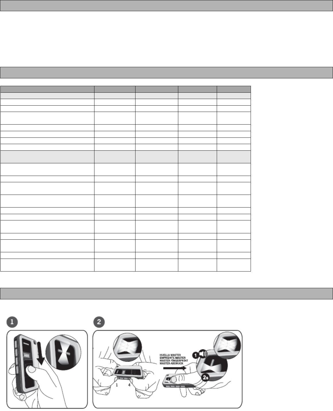 Master fingerprint: fingerprint that allows using operating and configuration modes