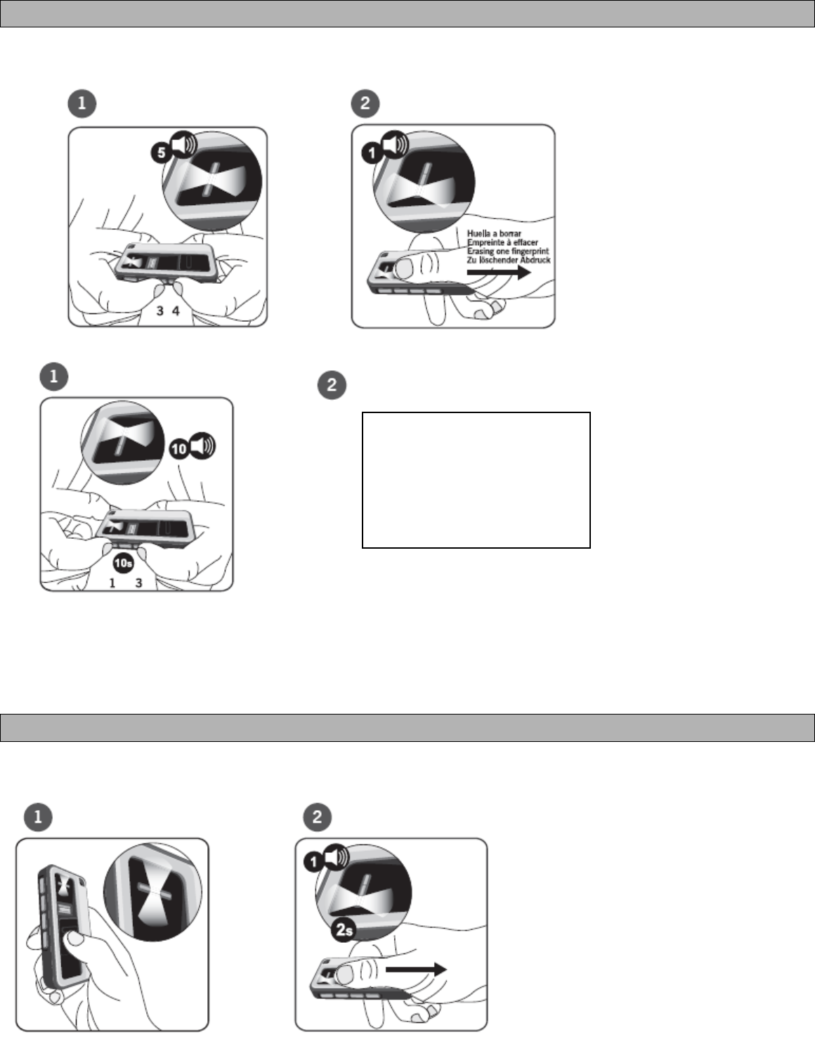 Erasing one fingerprint ON 5 beeps