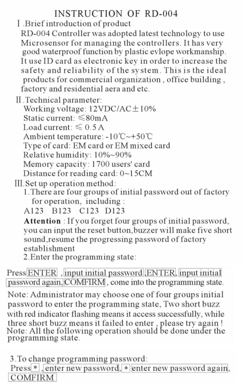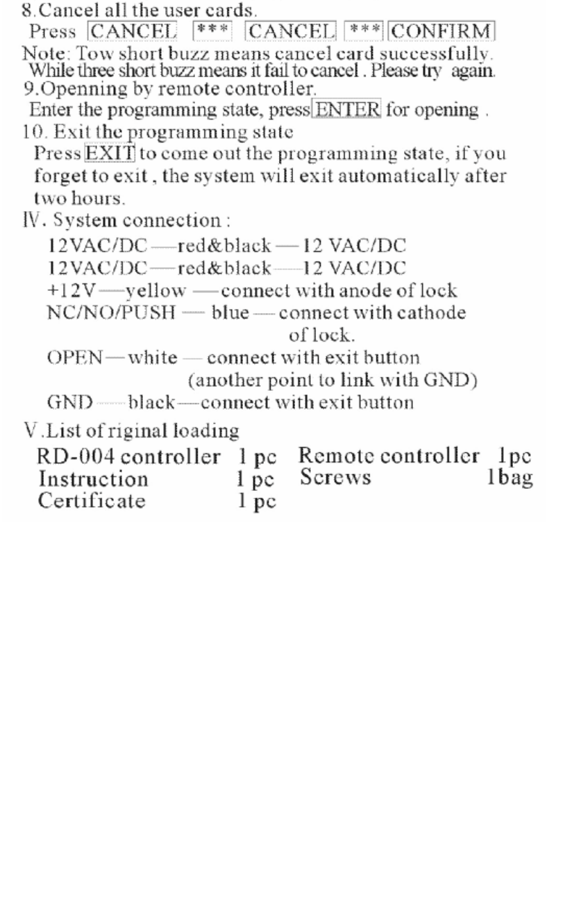 Controlled Entry Distributors RD-004 ACCESS CONTROLLER User Manual