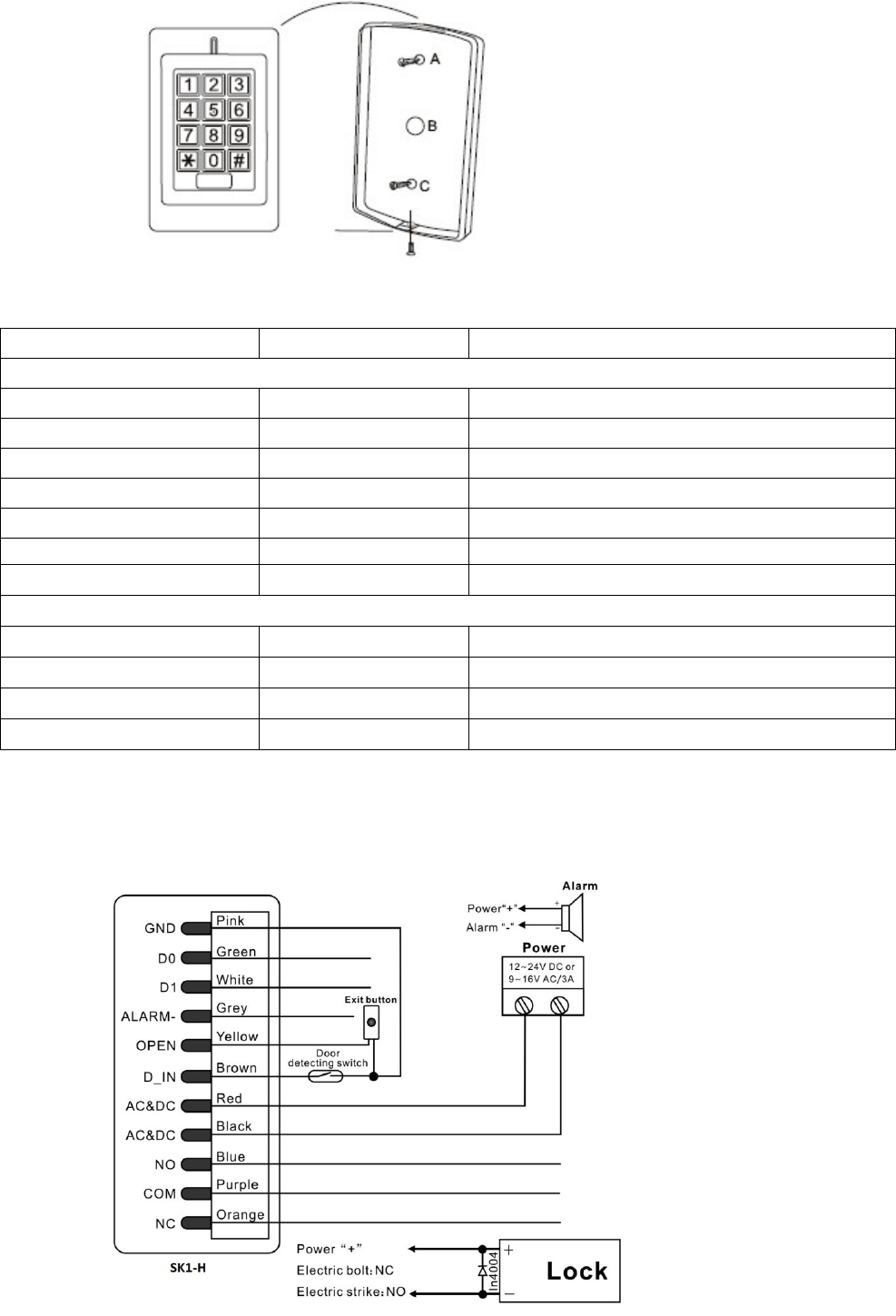 connected to the Wiegand input terminals on the SK1-H. Either an ID card reader (125 KHz) or an IC card