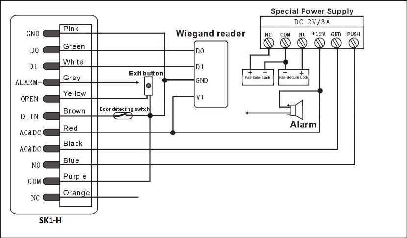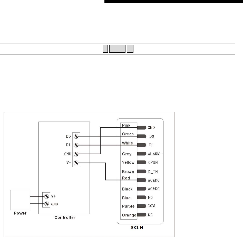 SK1-H supports a Wiegand 26~37 bit input so an external Wiegand device with a 26~37 bit output can be