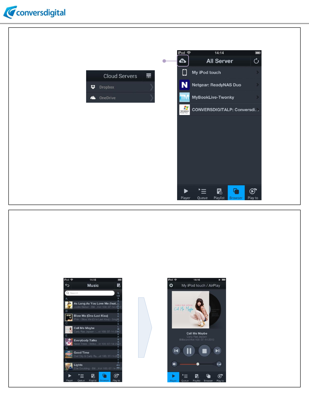 different servers into a playlist. mconnect Control automatically detects whether server devices are on