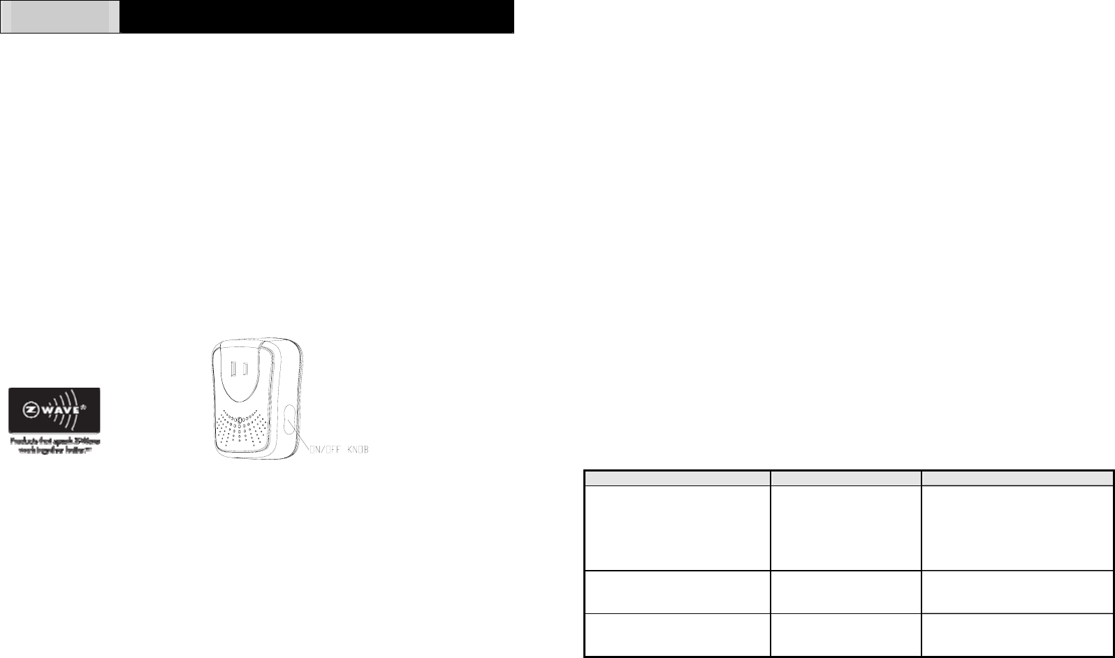 plug-in On/Off Module is a Z-WaveTM enabled device and is fully compatible with