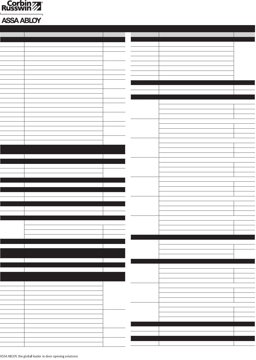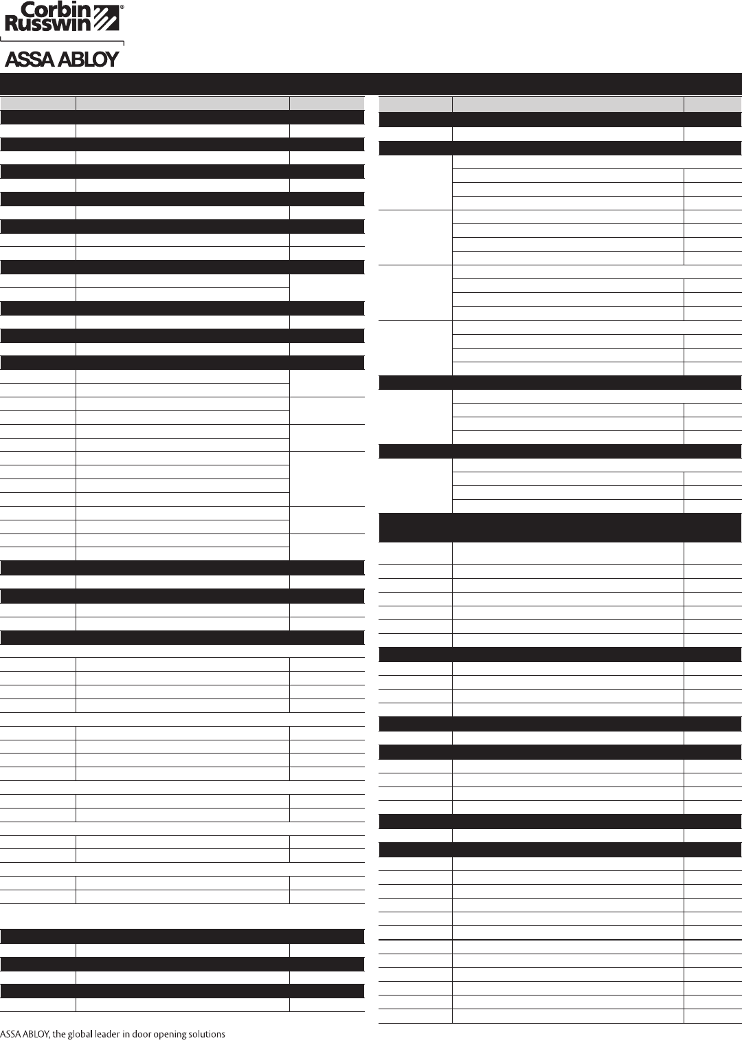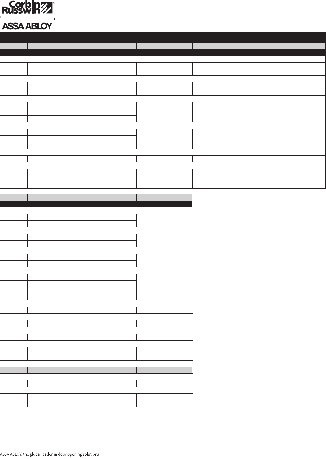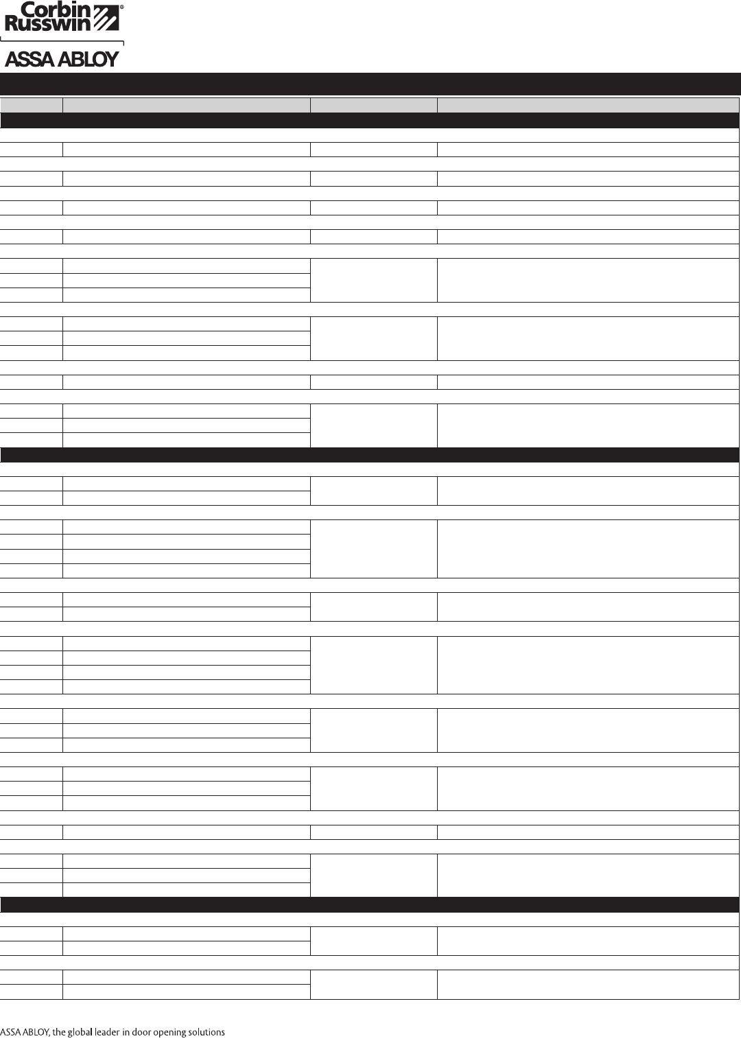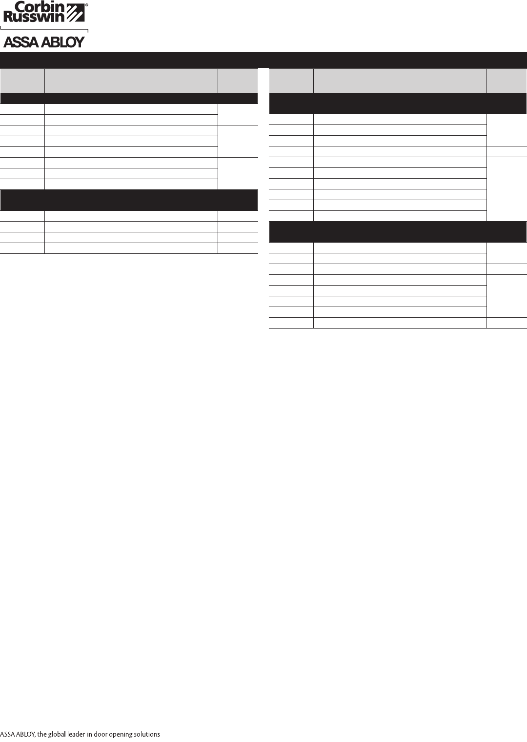 Corbin Russwin Inc., an ASSA ABLOY Group company reserves the right to change availability of any item in this catalog, its design, construction, and/or its materials.