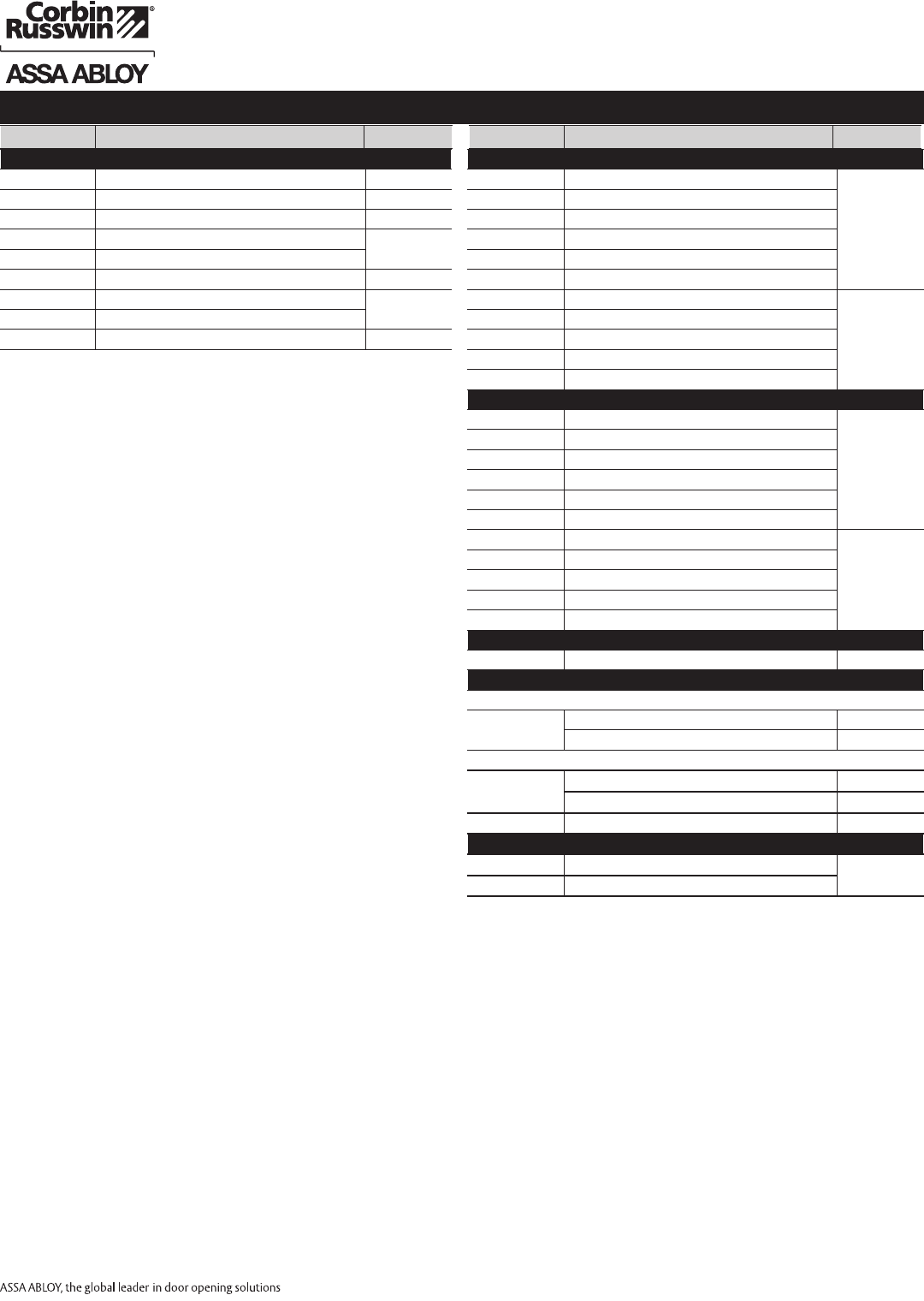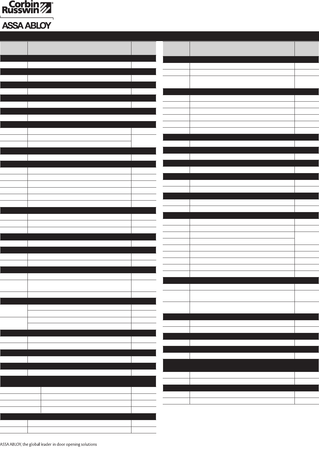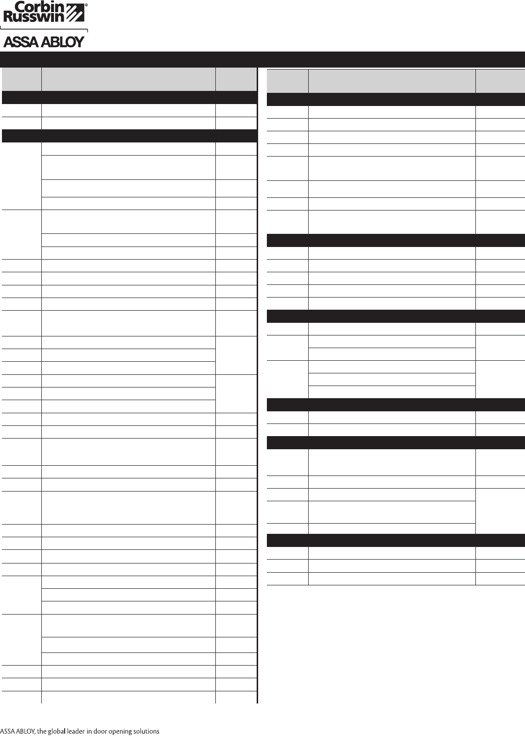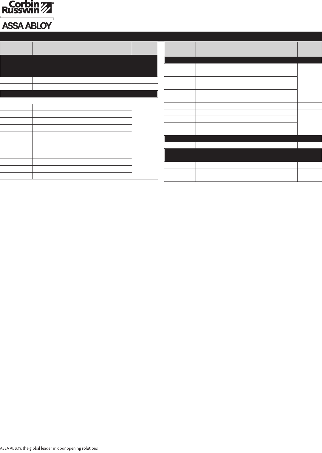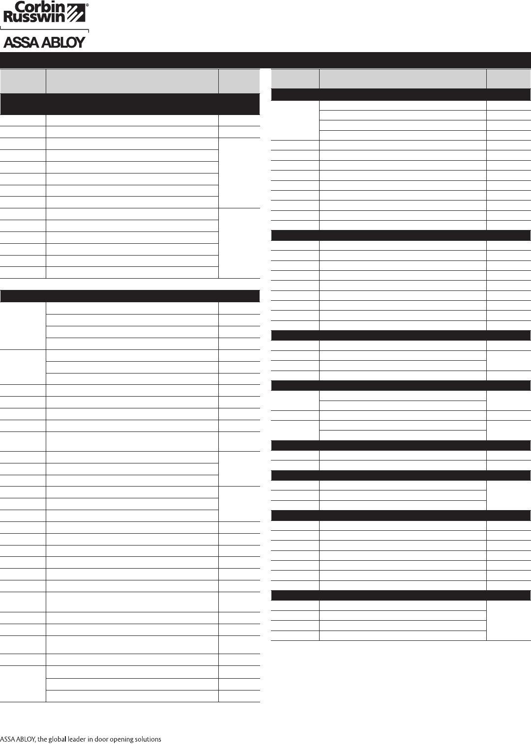 Corbin Russwin Inc., an ASSA ABLOY Group company reserves the right to change availability of any item in this catalog, its design, construction, and/or its materials.